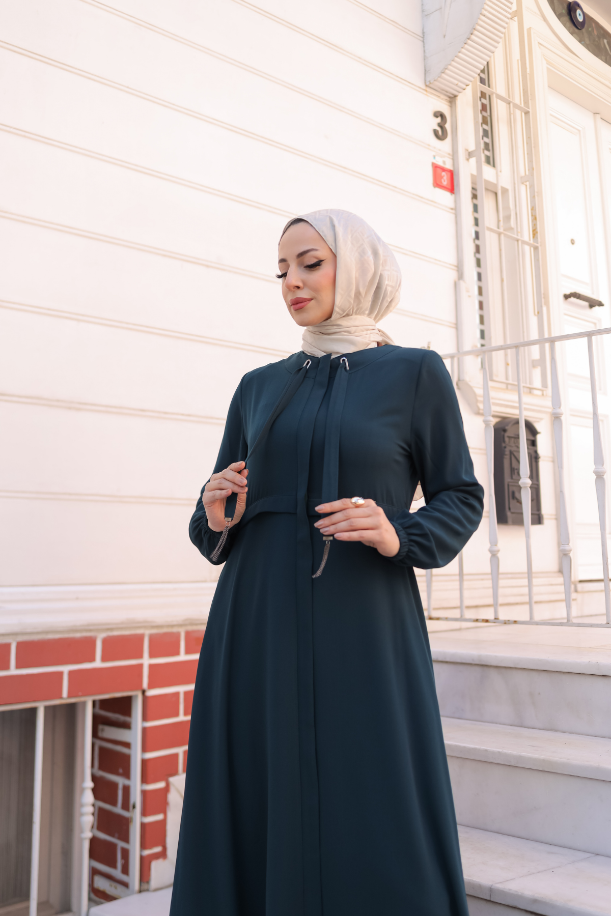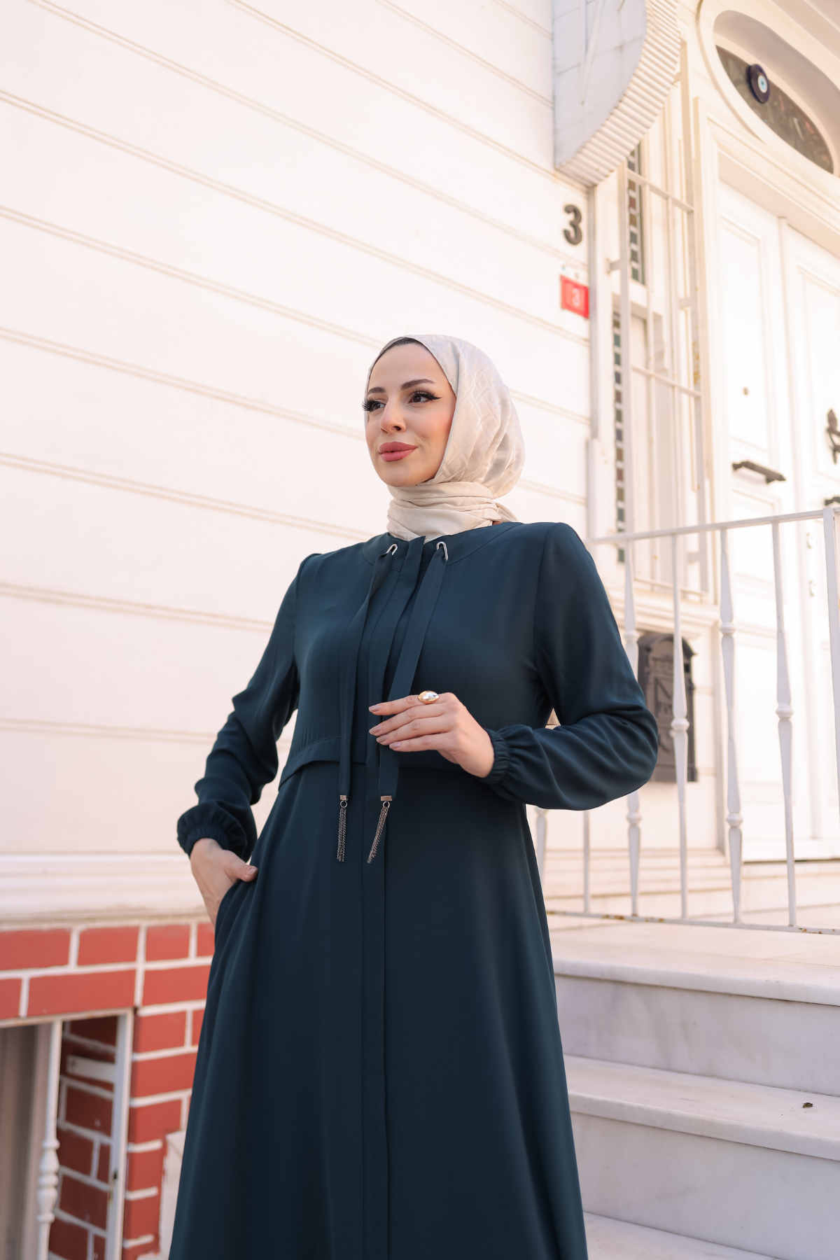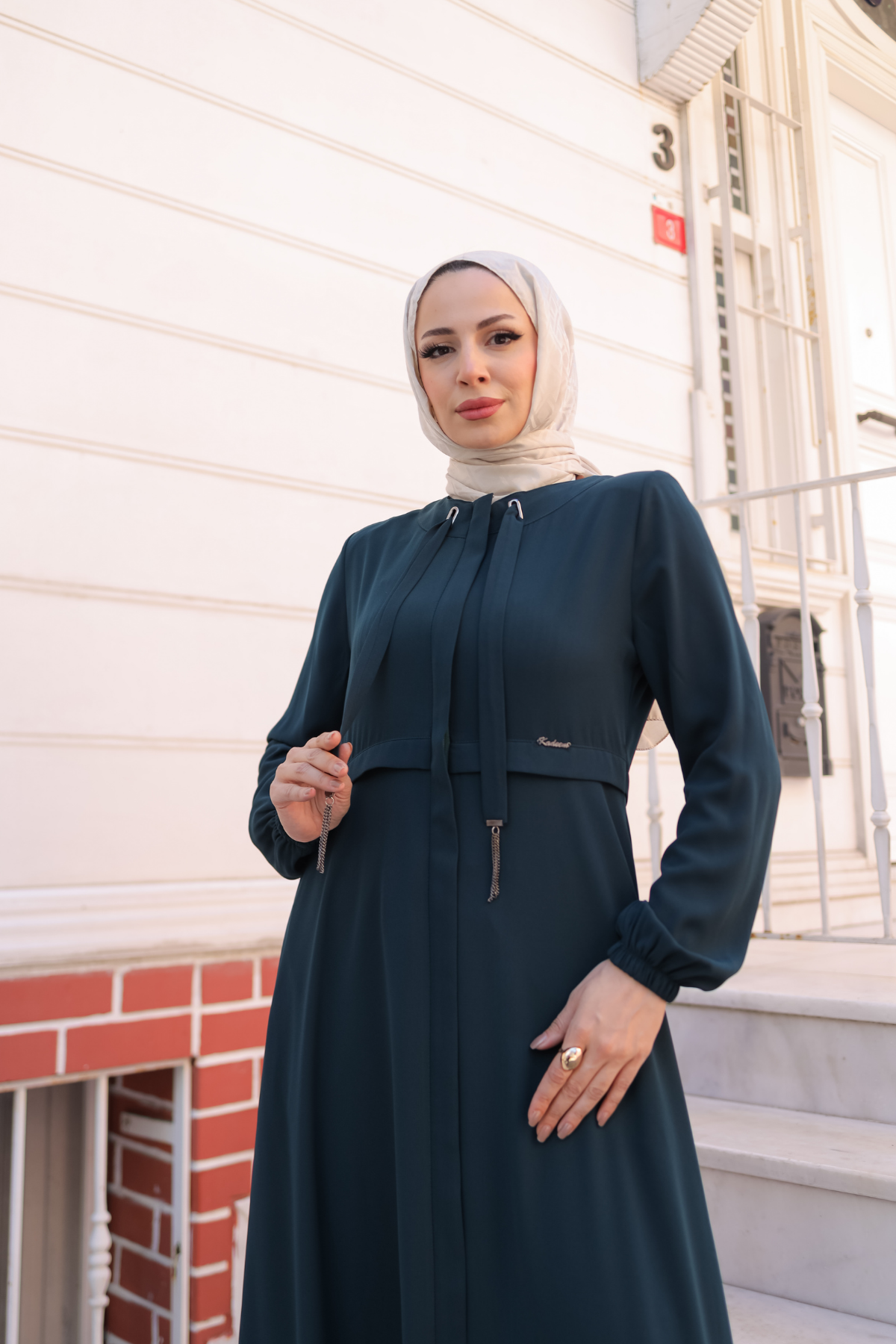 Allerli Kiloş Bağcıklı Ferace Petrol - 9041