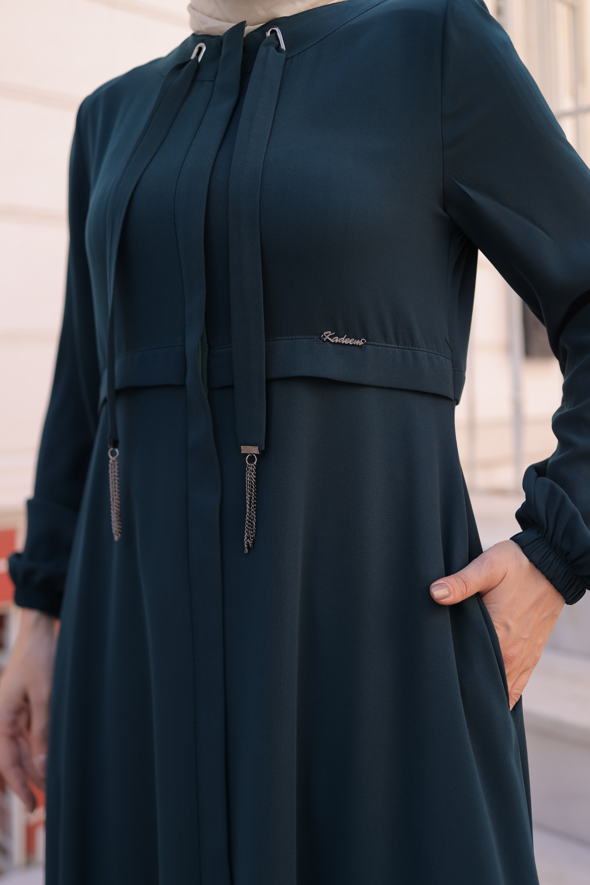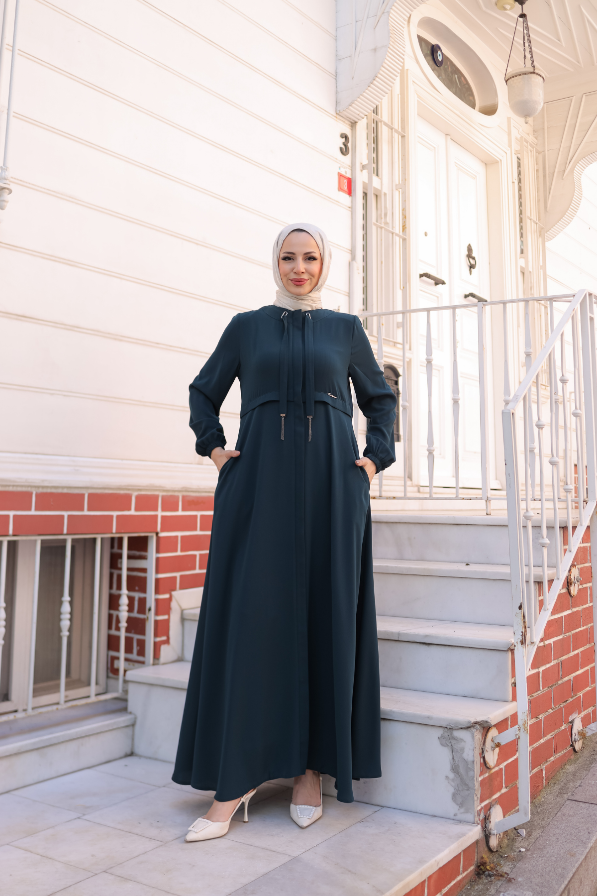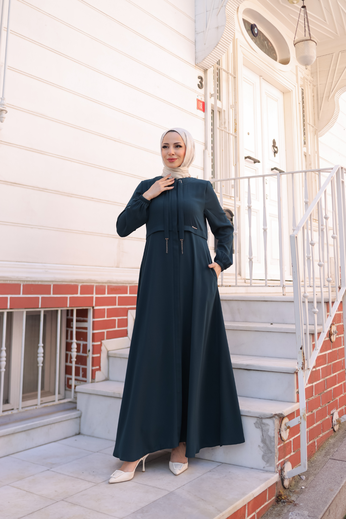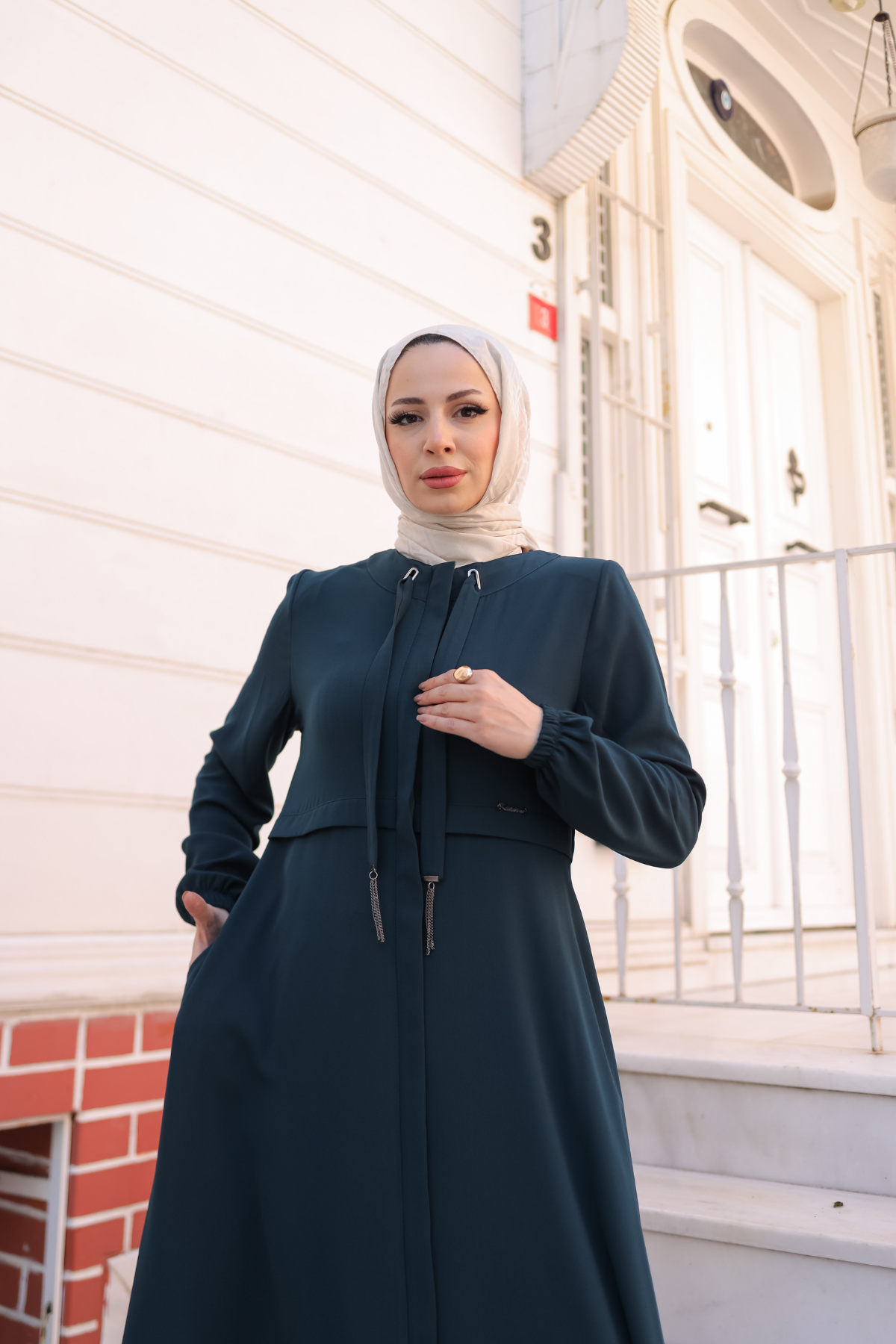 Allerli Kiloş Bağcıklı Ferace Petrol - 9041