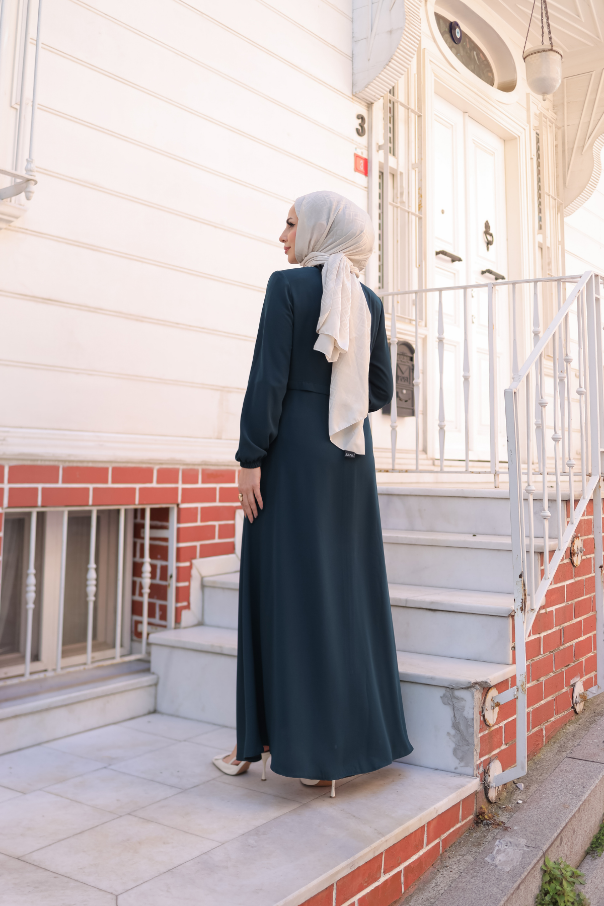 Zarafeti ve konforu bir araya getiren bu şık ferace modeli, 40-52 beden aralığında sunulmaktadır. Kaliteli Rabia krep kumaştan üretilen tasarım, dökümlü yapısı ve rahat kesimiyle gün boyu konfor sağlarken şıklığınızdan da ödün vermez. Önden fermuarlı yapısı hem pratik hem de modern bir kullanım sunar. Günlük kullanımdan özel davetlere kadar geniş bir kullanım alanına sahiptir.