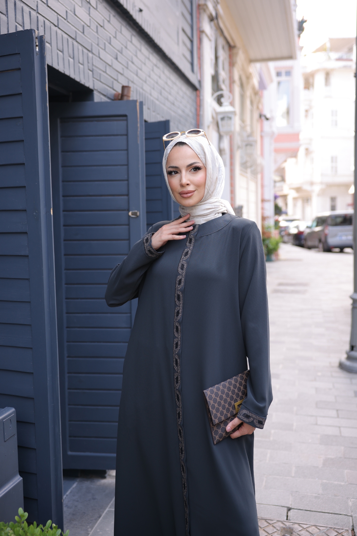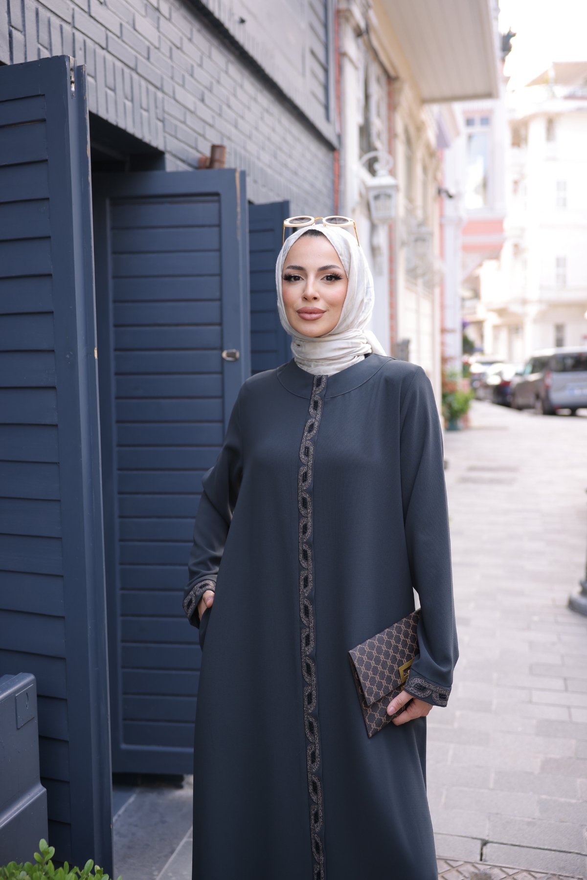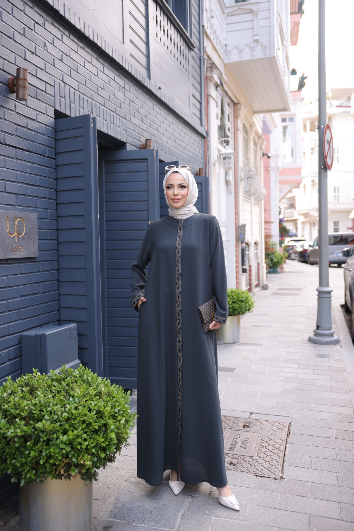 Zarif duruşuyla ön plana çıkan Nakış Detaylı Petek Ferace, modern tasarımı ve özel petek dokulu kumaşı ile hem şıklığı hem de konforu bir arada sunar. Düz kesimi ve bilek detaylarındaki ince nakış işçiliğiyle dikkat çeken bu model, günlük ve özel gün kombinlerinize zarafet katmak için ideal bir seçenektir.