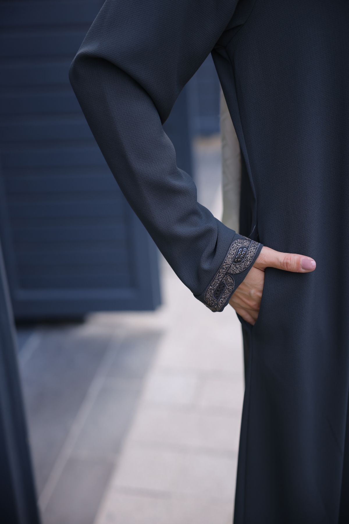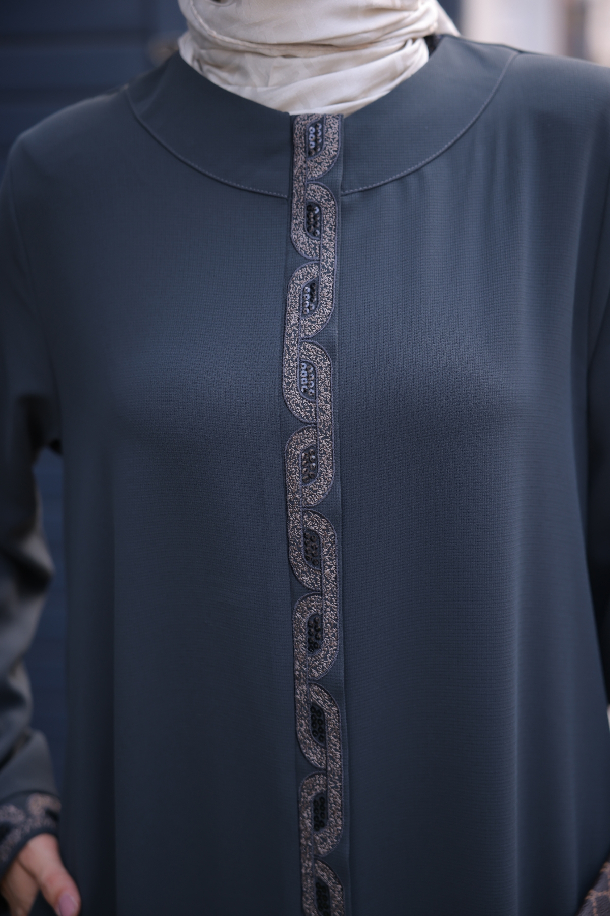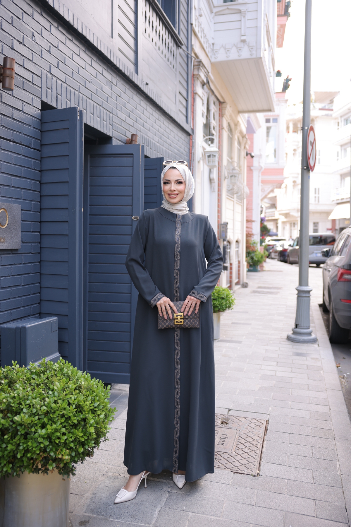 Zarif duruşuyla ön plana çıkan Nakış Detaylı Petek Ferace, modern tasarımı ve özel petek dokulu kumaşı ile hem şıklığı hem de konforu bir arada sunar. Düz kesimi ve bilek detaylarındaki ince nakış işçiliğiyle dikkat çeken bu model, günlük ve özel gün kombinlerinize zarafet katmak için ideal bir seçenektir.