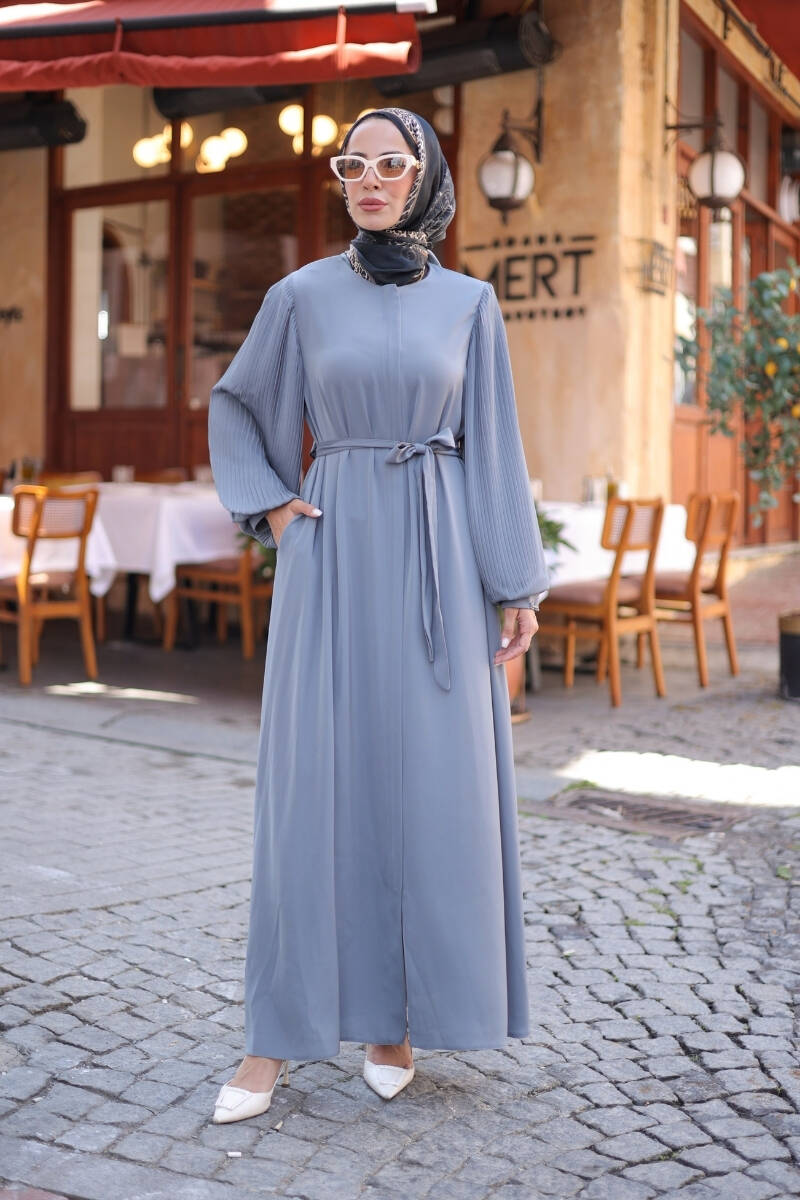 Zarafeti ve konforu aynı anda sunan bu şık ferace, 38-52 beden aralığında sunulmaktadır. Akıcı ve hafif yapısıyla öne çıkan Dubai ipeği kumaştan üretilmiştir. Bel kısmındaki kuşak detayı sayesinde vücut formuna göre ayarlanabilirken, pile detaylı piliseli kolları modele zarif ve feminen bir dokunuş katar. Astarsız ve nefes alabilen yapısıyla dört mevsim rahatlıkla tercih edilebilir. Hem günlük kullanımda hem de özel davetlerde şıklığınızla fark yaratın.