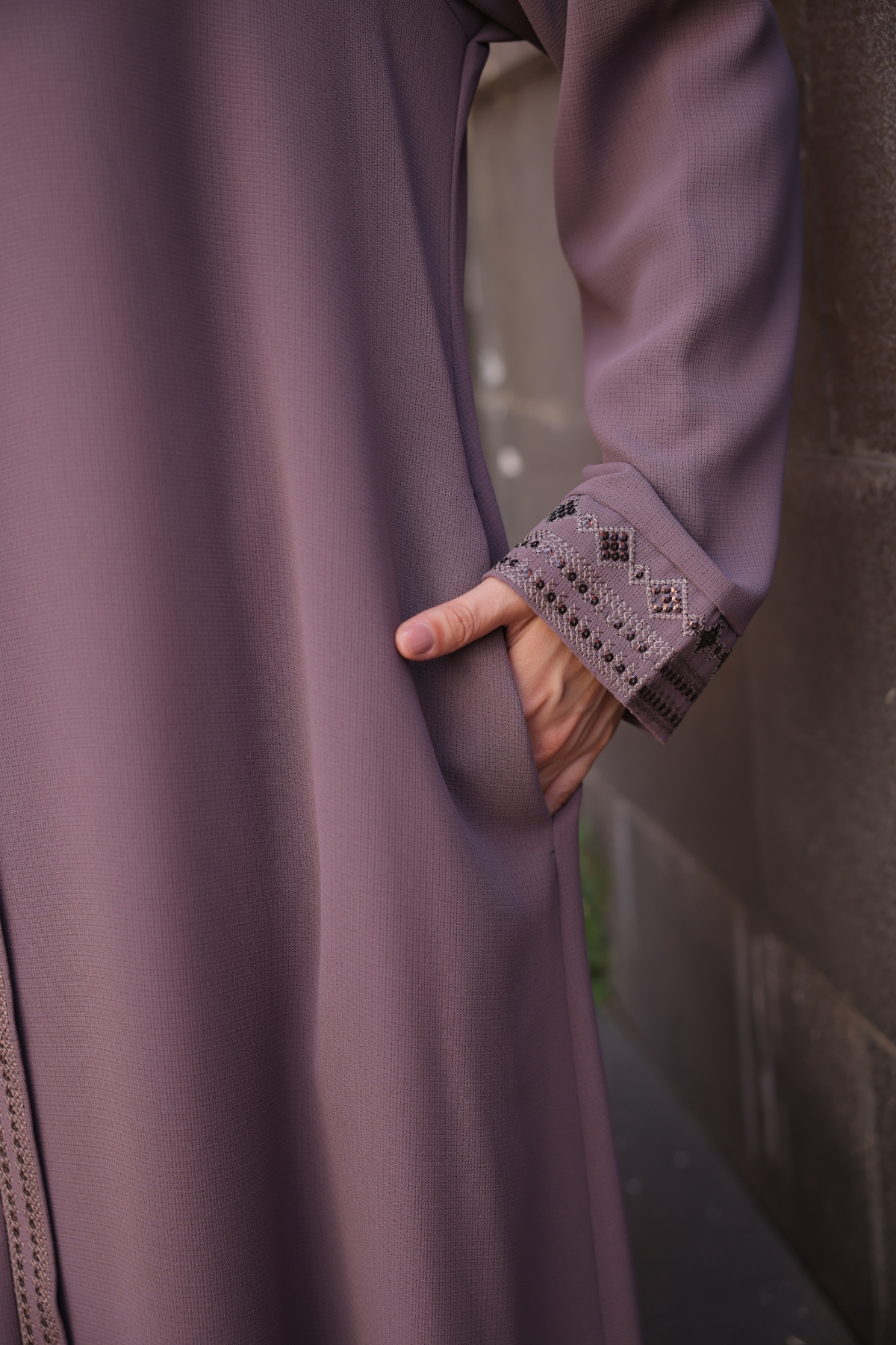Zarif duruşuyla ön plana çıkan Nakış Detaylı Petek Ferace, modern tasarımı ve özel petek dokulu kumaşı ile hem şıklığı hem de konforu bir arada sunar. Düz kesimi ve bilek detaylarındaki ince nakış işçiliğiyle dikkat çeken bu model, günlük ve özel gün kombinlerinize zarafet katmak için ideal bir seçenektir.