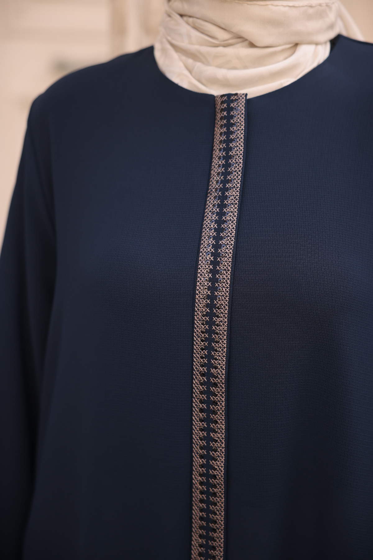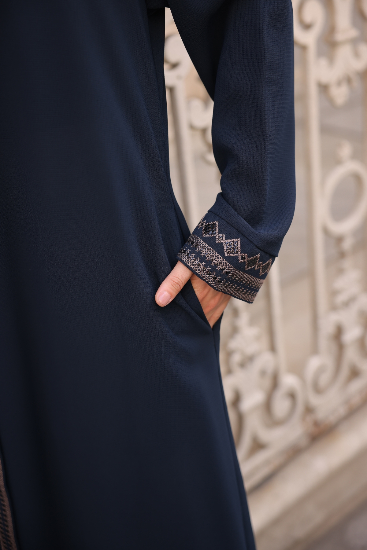 • Kol ve ön kapama kısmında zarif nakış detayları