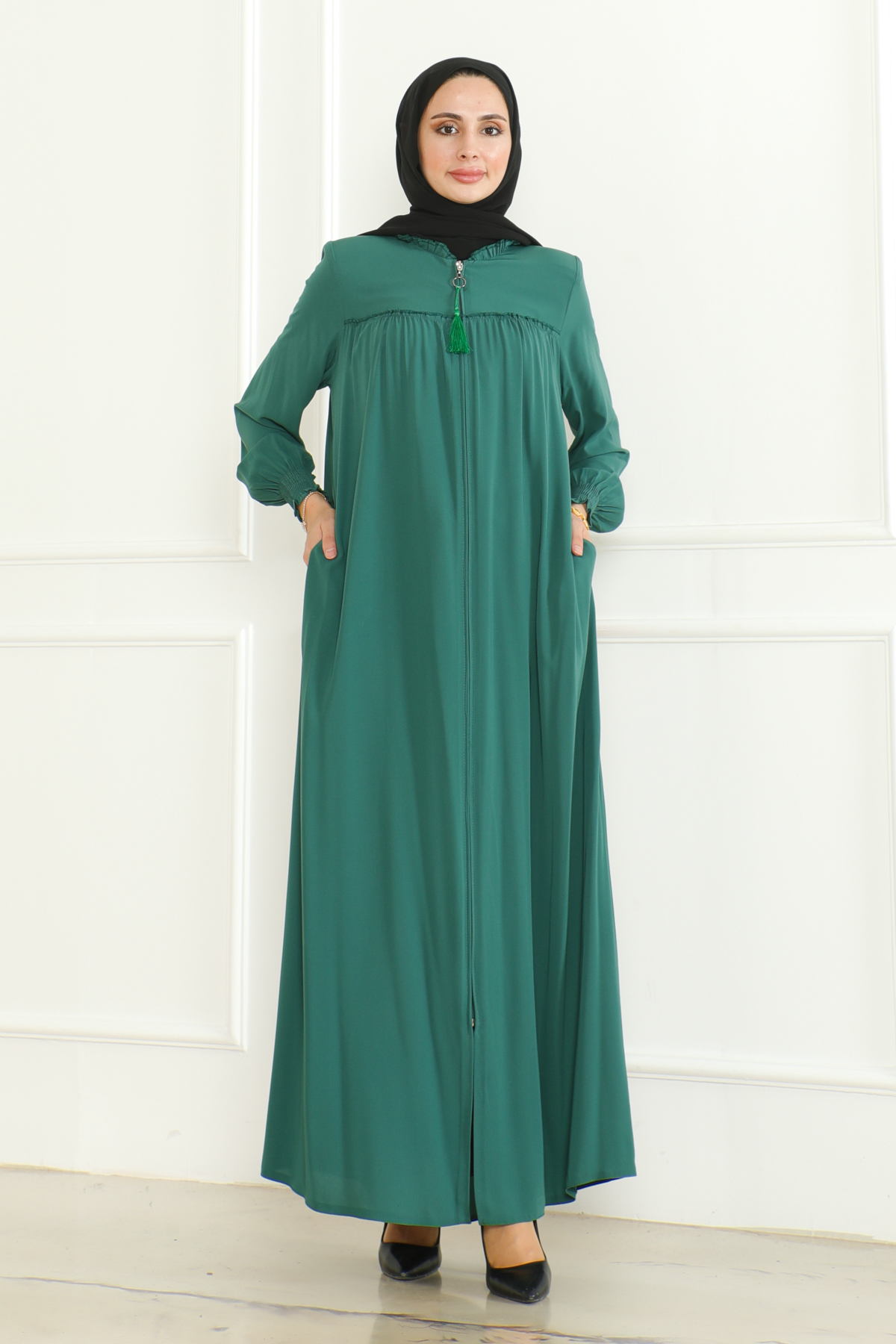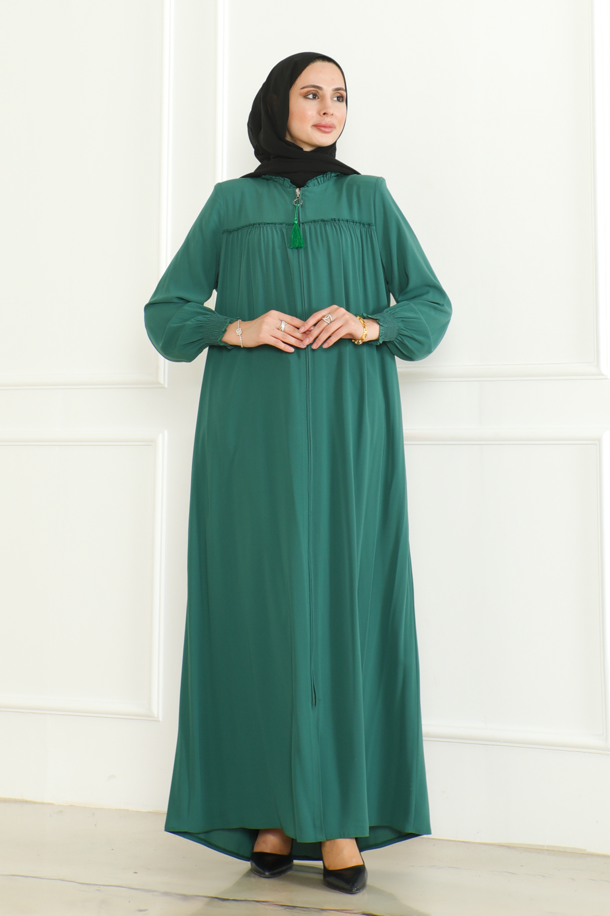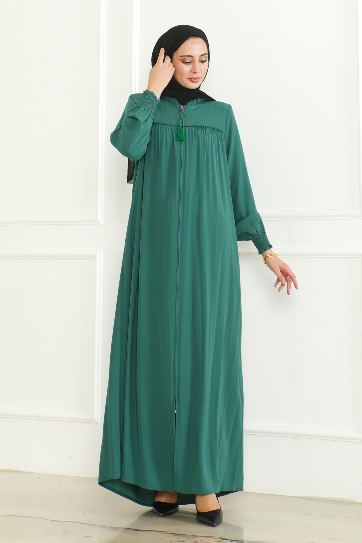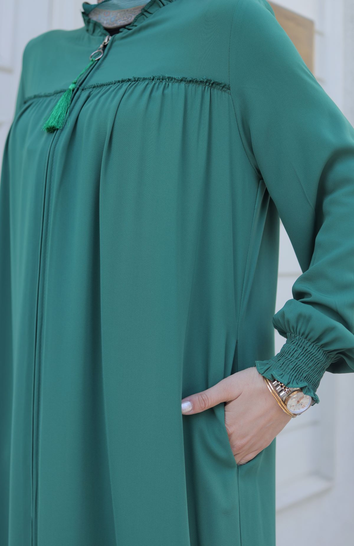 Medine ipeği ferace, zarif ve konforlu bir dış giyim parçasıdır. Hem geleneksel hem de modern giyim anlayışına uygun tasarımları ile dikkat çeker. Hem şıklığı hem rahatlığı arayanlar için ideal bir seçenektir. Yüksek kaliteli Medine ipeği kumaşı, feracelere zarif bir parlaklık ve dayanıklılık kazandırırken, vücuda uyumlu kesimi ile rahat bir kullanım sağlar.