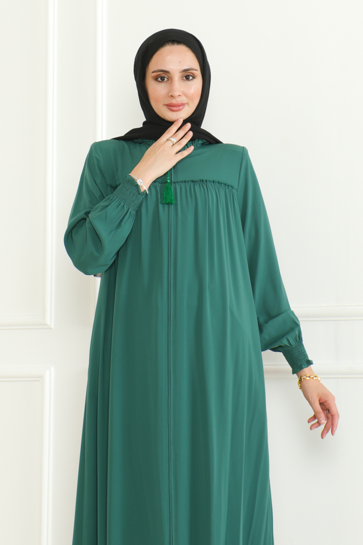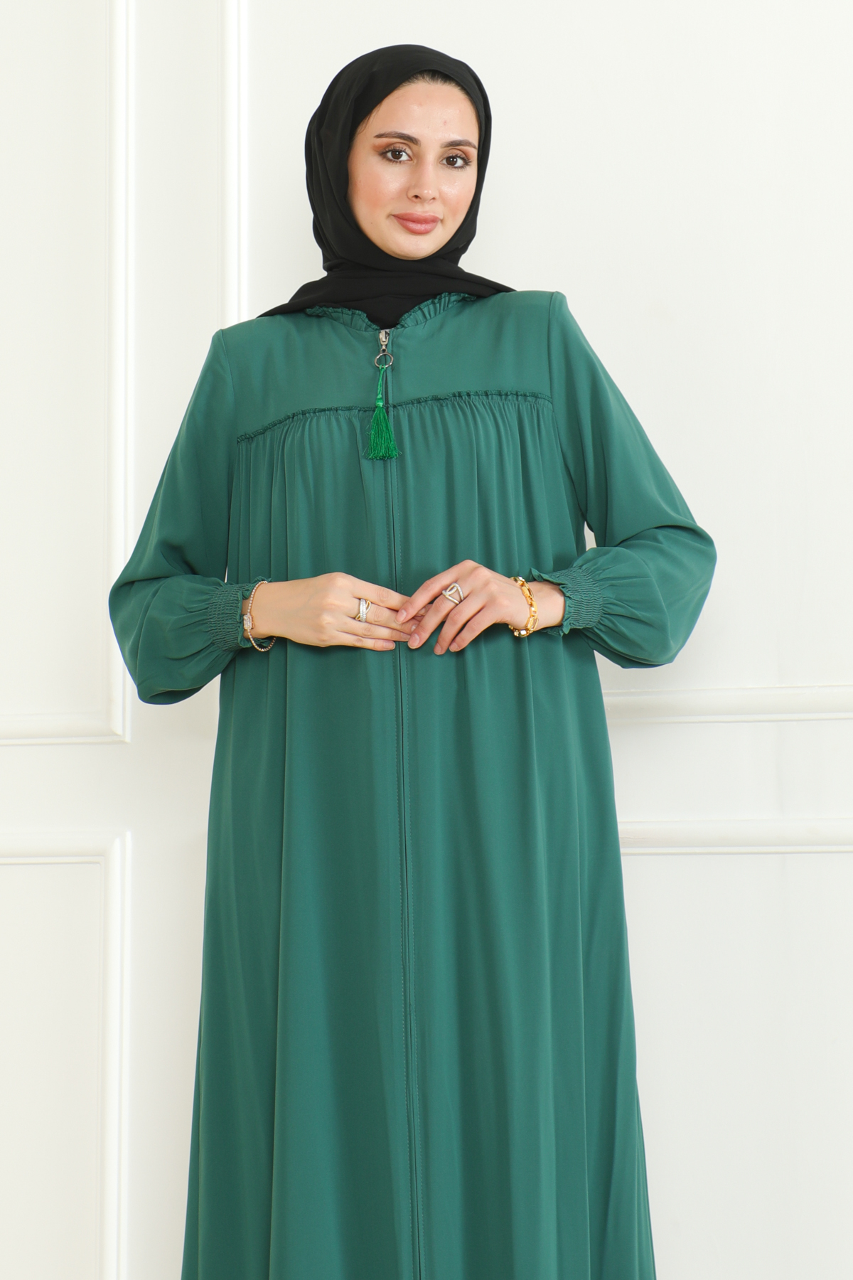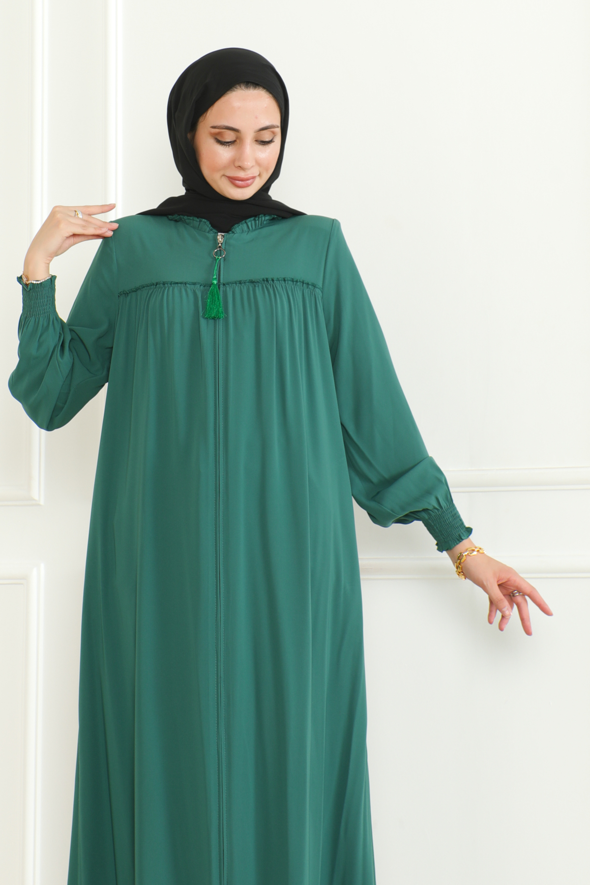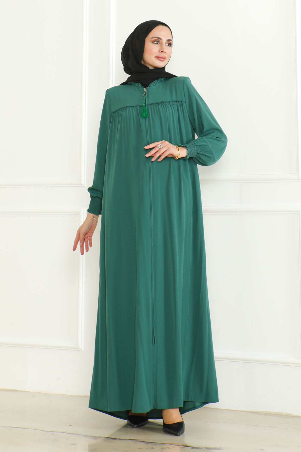 Medine ipeği ferace, zarif ve konforlu bir dış giyim parçasıdır. Hem geleneksel hem de modern giyim anlayışına uygun tasarımları ile dikkat çeker. Hem şıklığı hem rahatlığı arayanlar için ideal bir seçenektir. Yüksek kaliteli Medine ipeği kumaşı, feracelere zarif bir parlaklık ve dayanıklılık kazandırırken, vücuda uyumlu kesimi ile rahat bir kullanım sağlar.