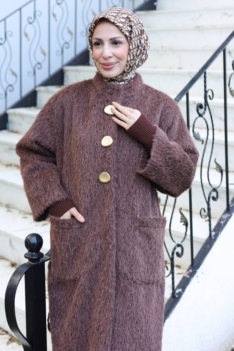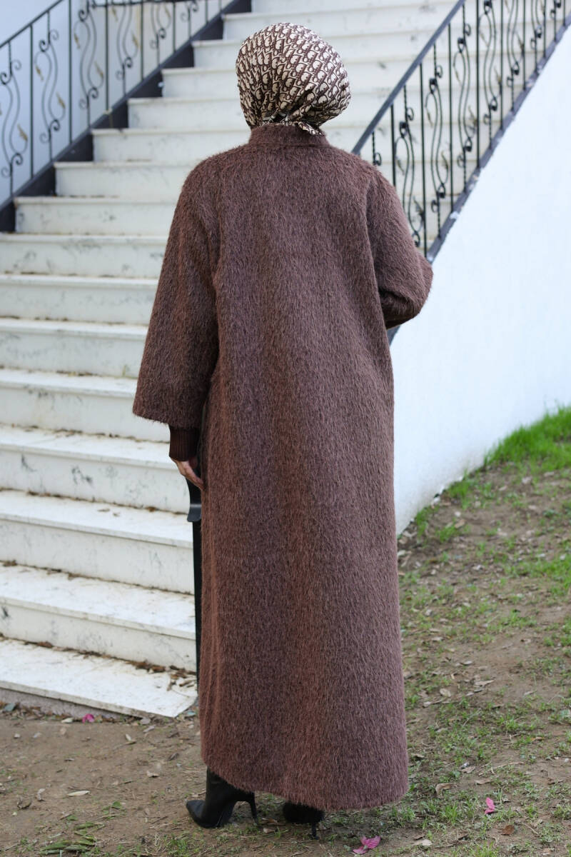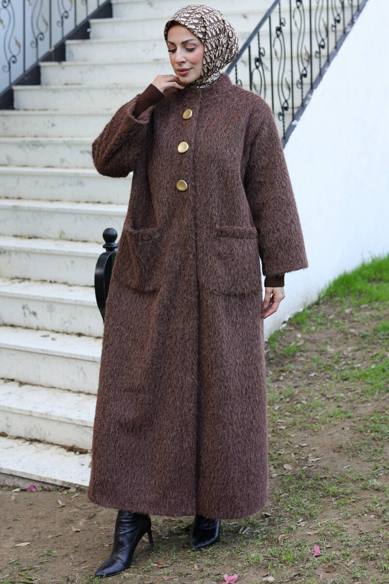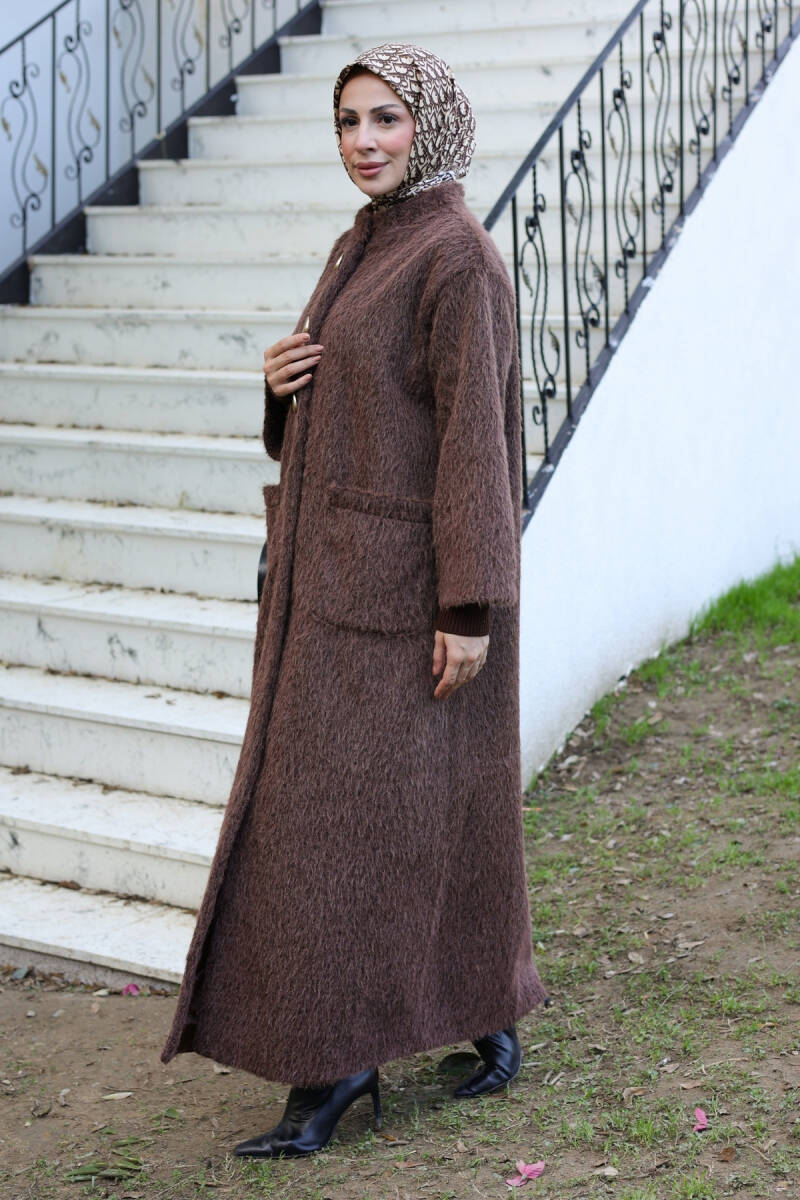 Şık duruşu, kaliteli kumaşı ve uzun boy tasarımıyla bu kaban, tesettür kış kombinlerinizin vazgeçilmez parçalarından biri olacaktır.