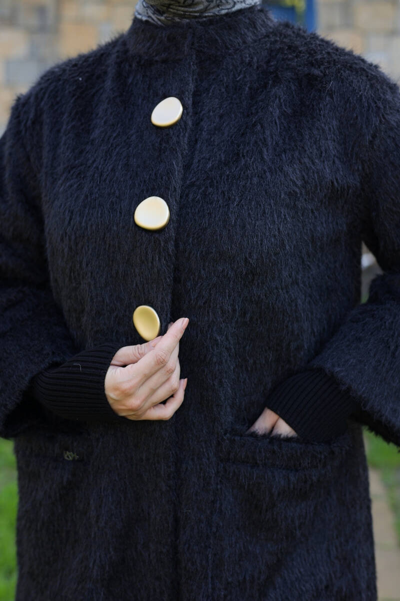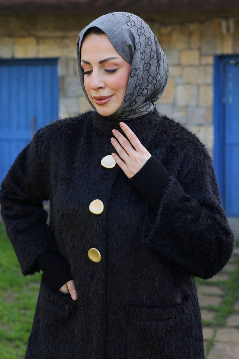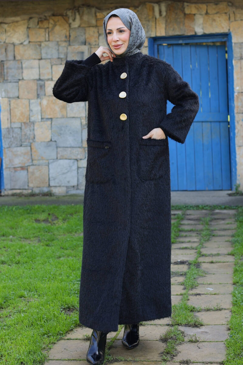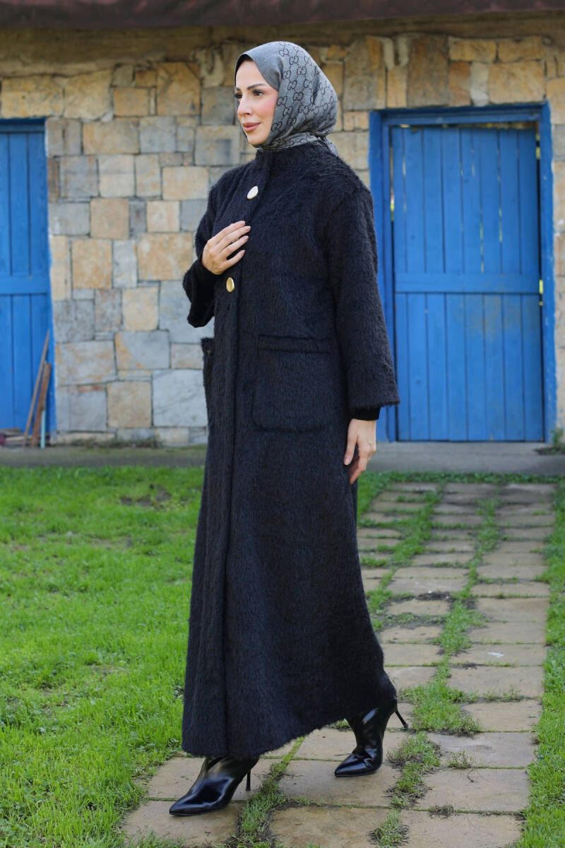 Şık duruşu, kaliteli kumaşı ve uzun boy tasarımıyla bu kaban, tesettür kış kombinlerinizin vazgeçilmez parçalarından biri olacaktır.