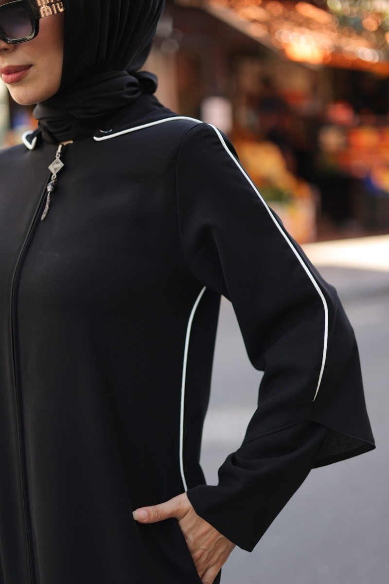 Buhara kumaştan üretilen Hayat Ferace, hafif yapısı ve akıcı duruşu sayesinde gün boyu konfor sunar. Kapüşonlu tasarımı, fermuar kapaması ve kol detaylarındaki zarif biyeler ile modern ve sportif bir görünüm yakalayın.