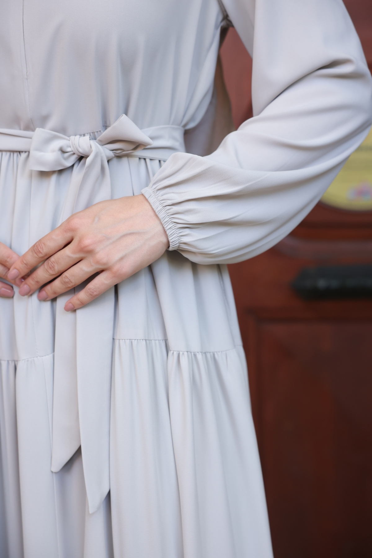Medine ipeği kumaşıyla zarafeti ve konforu bir arada sunan Katrel Elbise, 5 kat büzgülü tasarımıyla dinamik ve feminen bir siluet oluşturur. Dökümlü ve akıcı yapısı sayesinde hareket ettikçe estetik bir duruş sergiler. Hafifliği ve nefes alan dokusuyla gün boyu konfor sağlar.