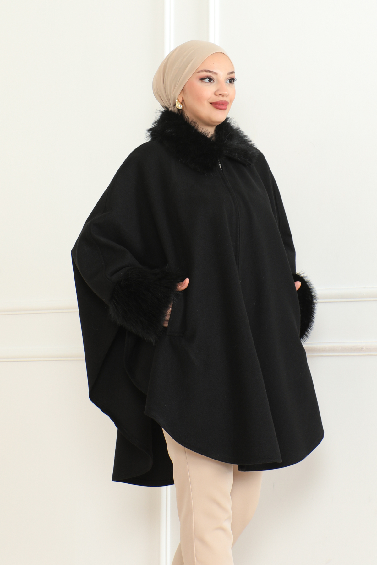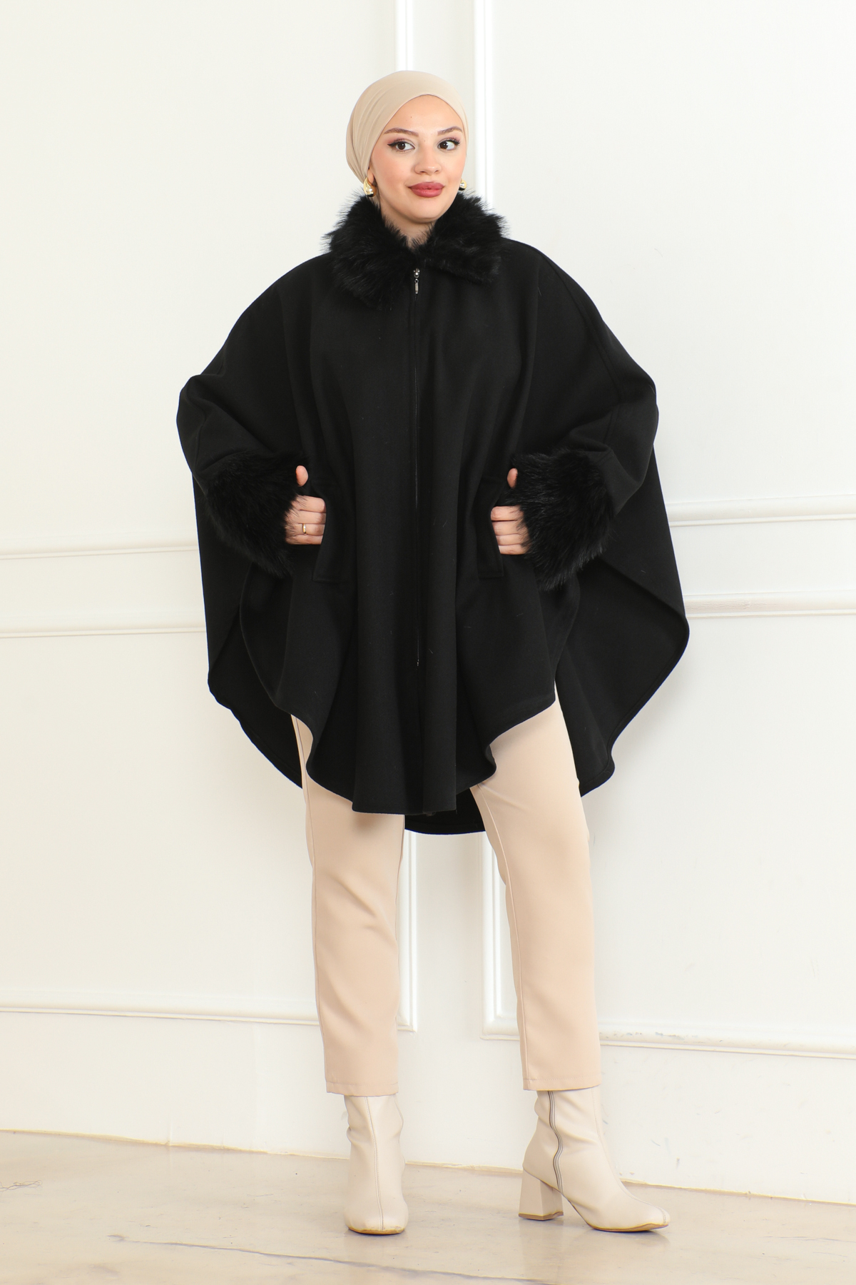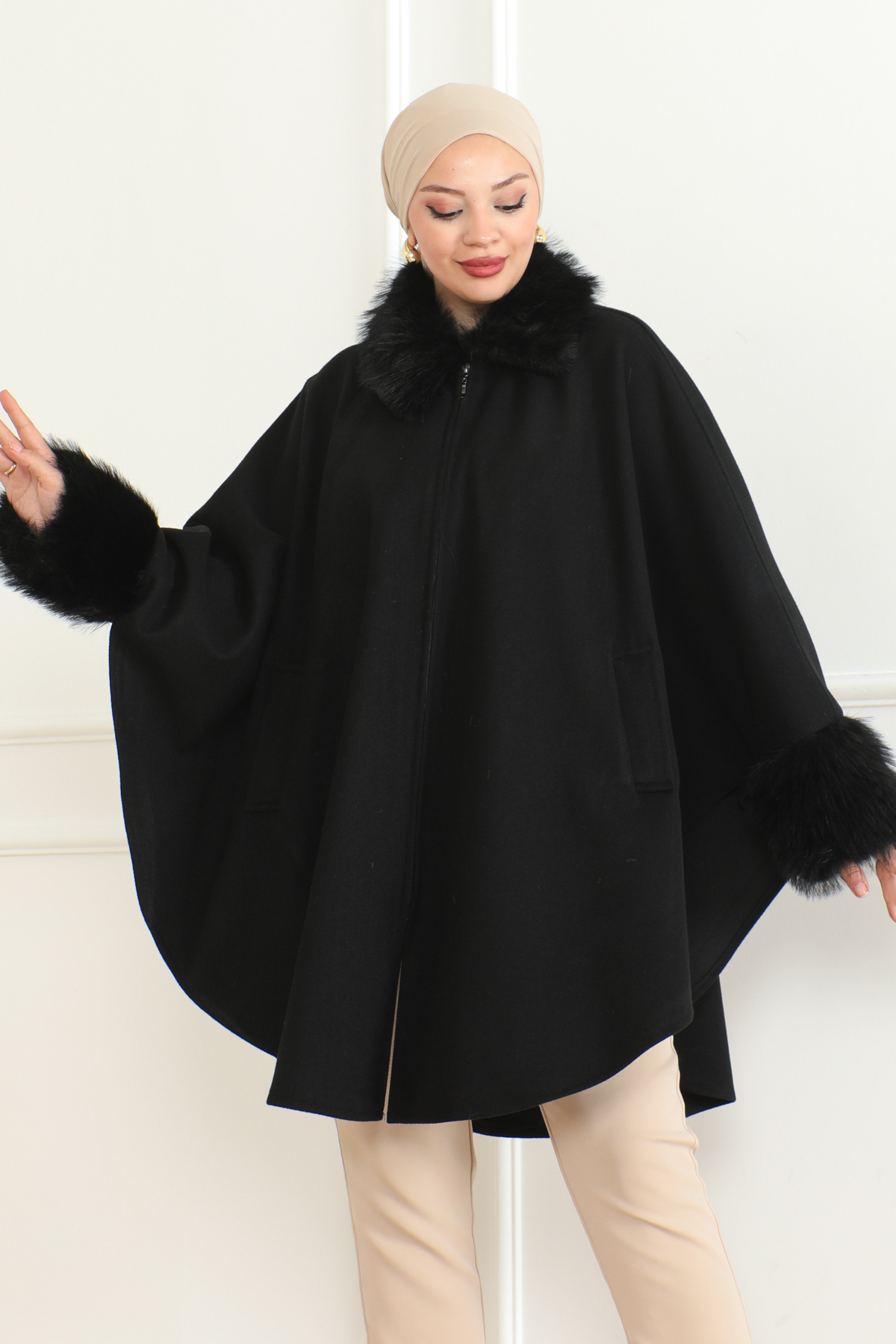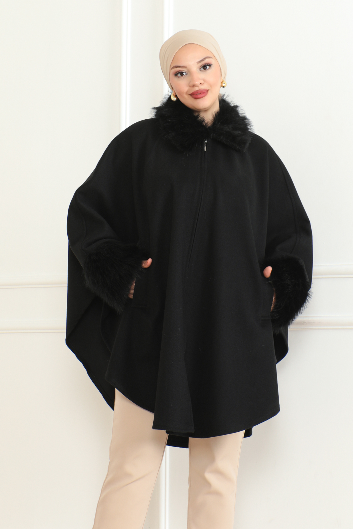 Kürklü kaşe panço, soğuk hava koşullarına karşı şıklığı ve fonksiyonelliği birleştiren bir dış giyim parçasıdır. Kaşe kumaş, kalın ve sıcak tutan bir yapıya sahipken, panço tasarımı da vücuda rahatça oturur ve hareket özgürlüğü sağlar.