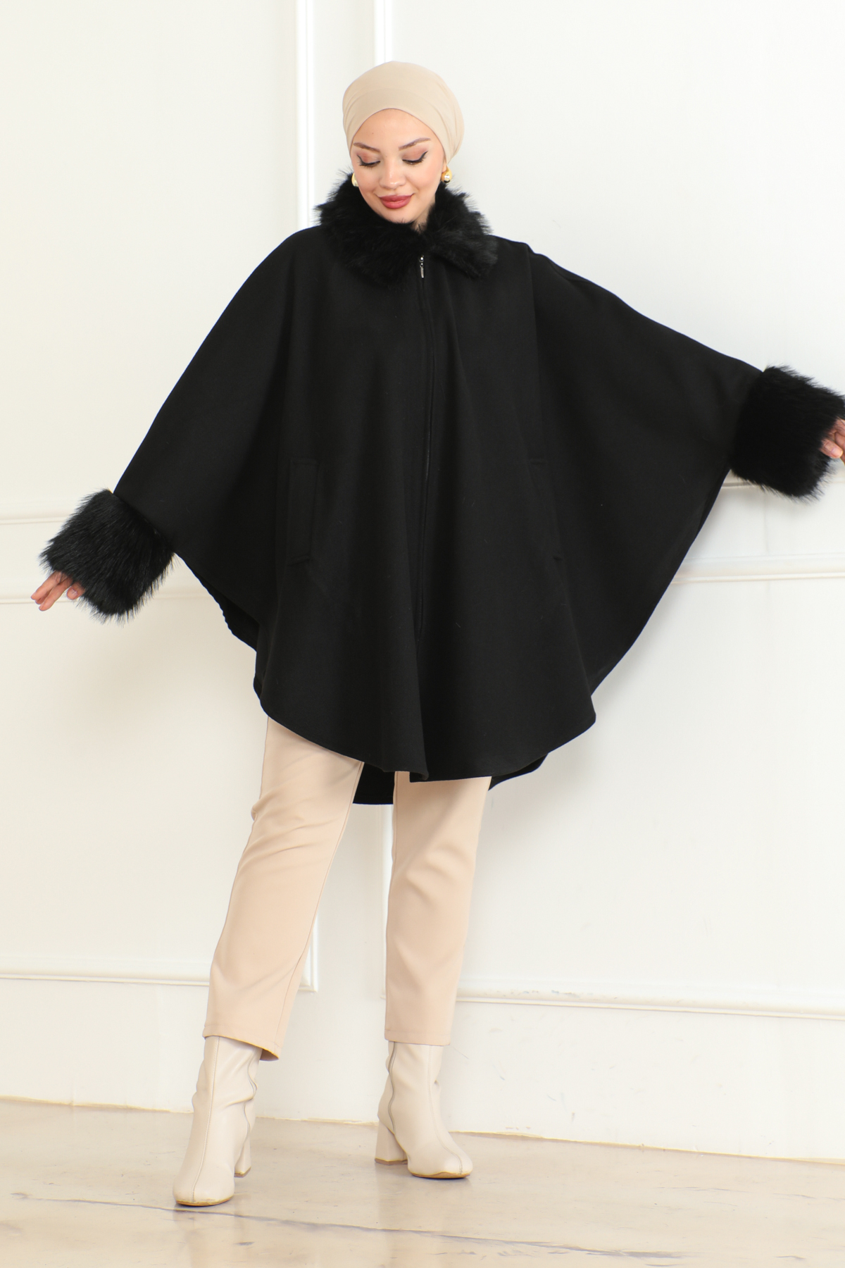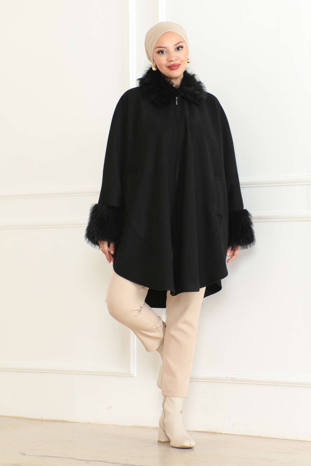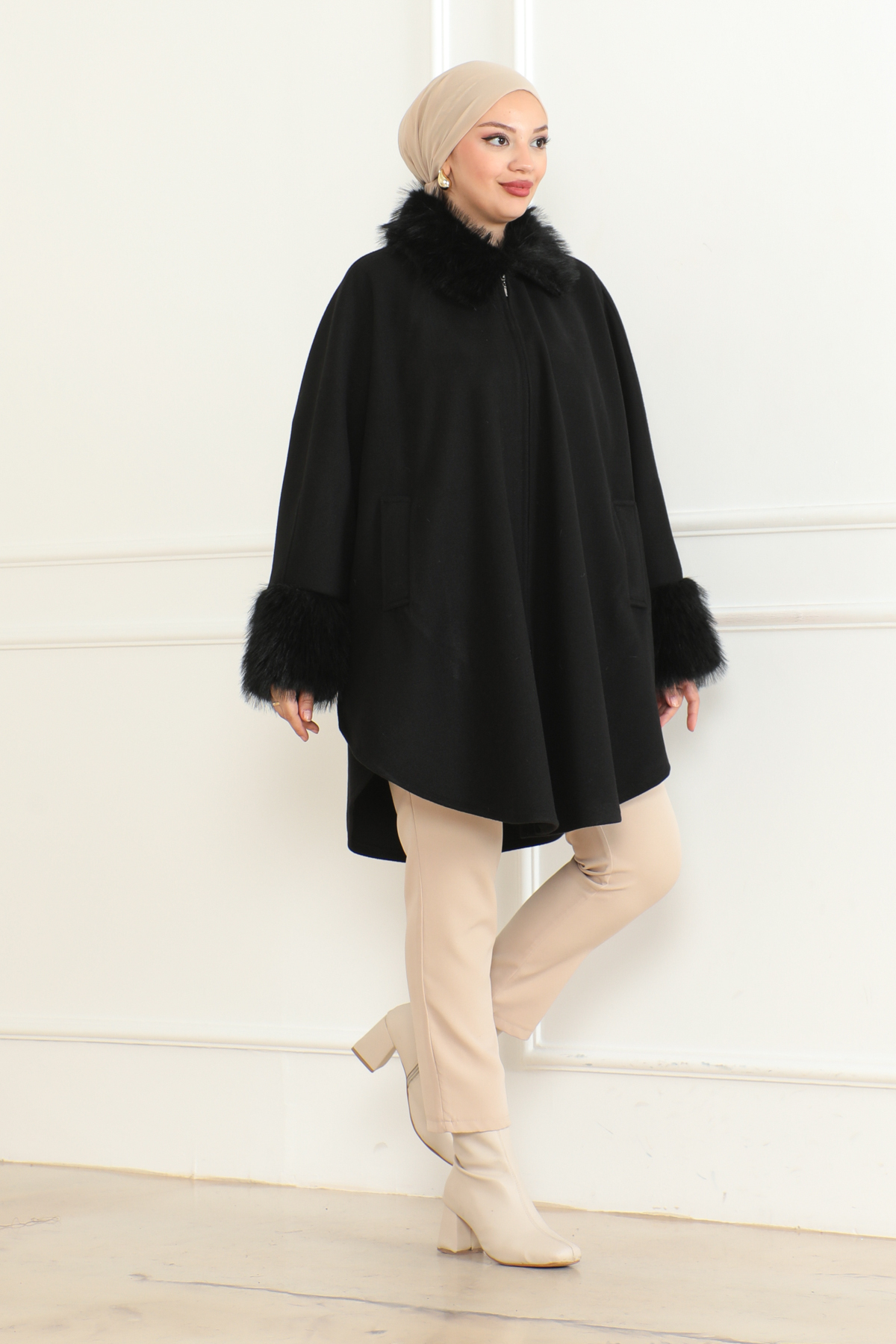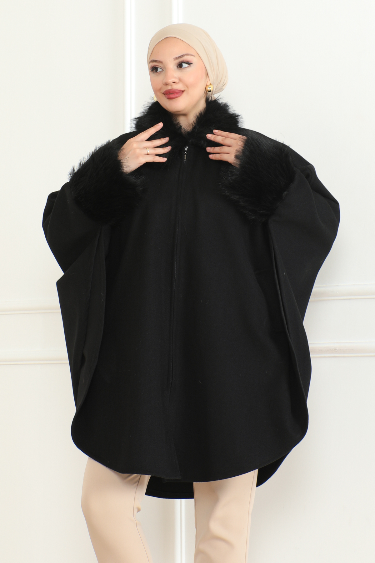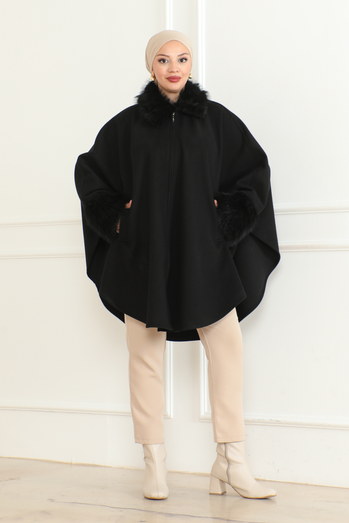 Kürklü kaşe panço, soğuk hava koşullarına karşı şıklığı ve fonksiyonelliği birleştiren bir dış giyim parçasıdır. Kaşe kumaş, kalın ve sıcak tutan bir yapıya sahipken, panço tasarımı da vücuda rahatça oturur ve hareket özgürlüğü sağlar.