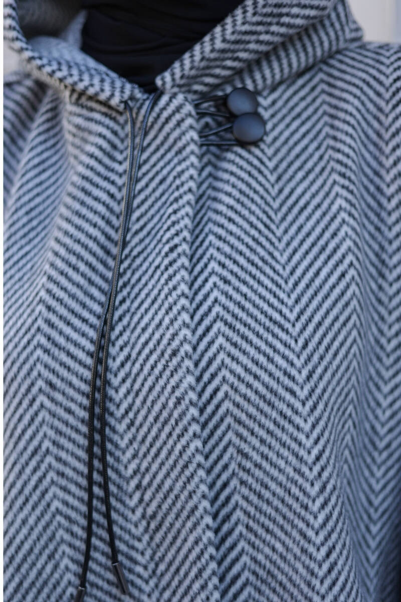 Kapüşon detayıyla modern bir görünüm kazandırırken, tok duruşuyla zarif bir siluet oluşturur.