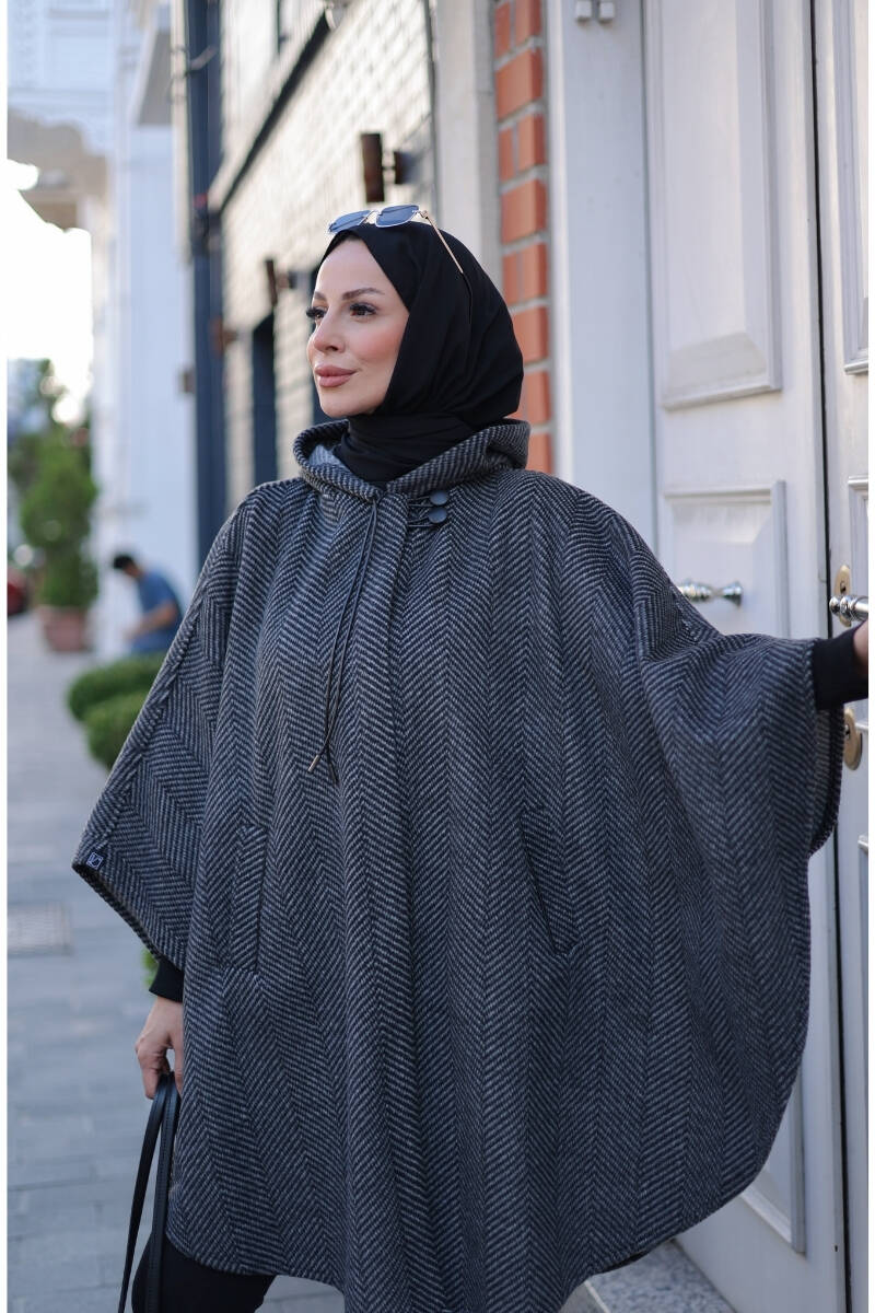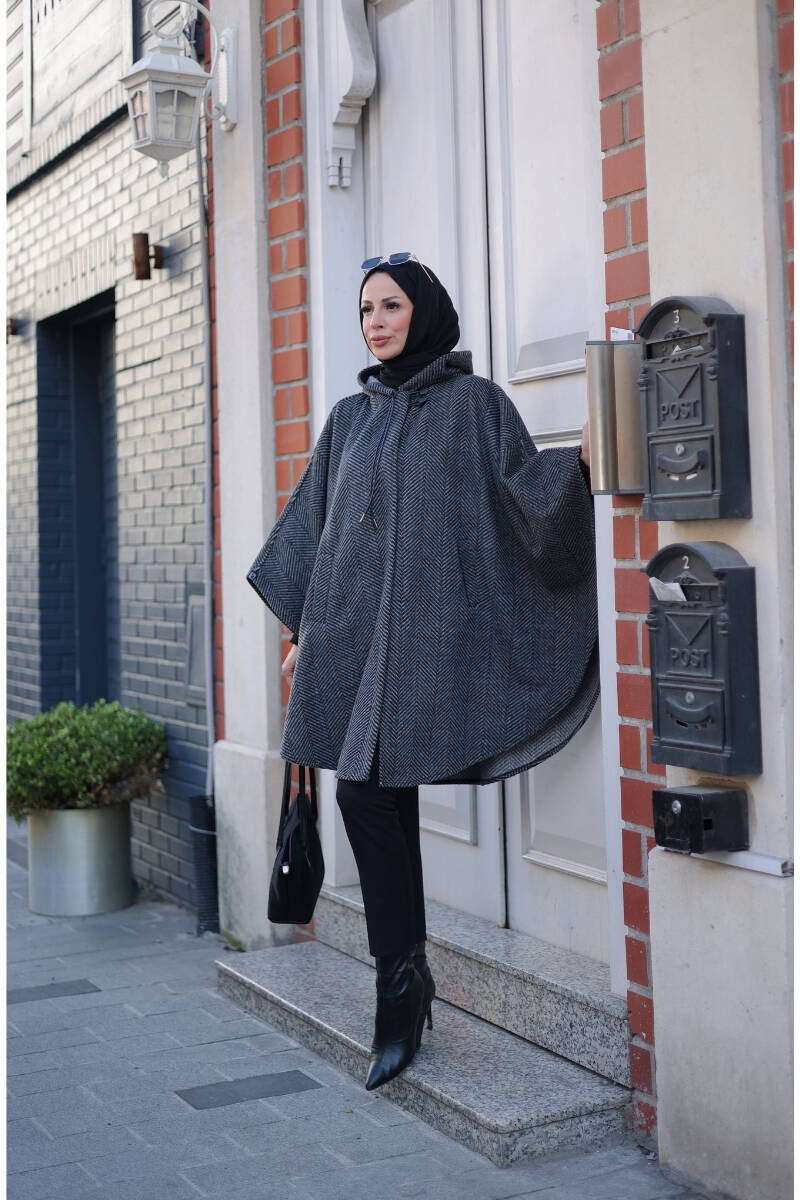Milena Balıksırtı Kaşe Panço Siyah – 2012