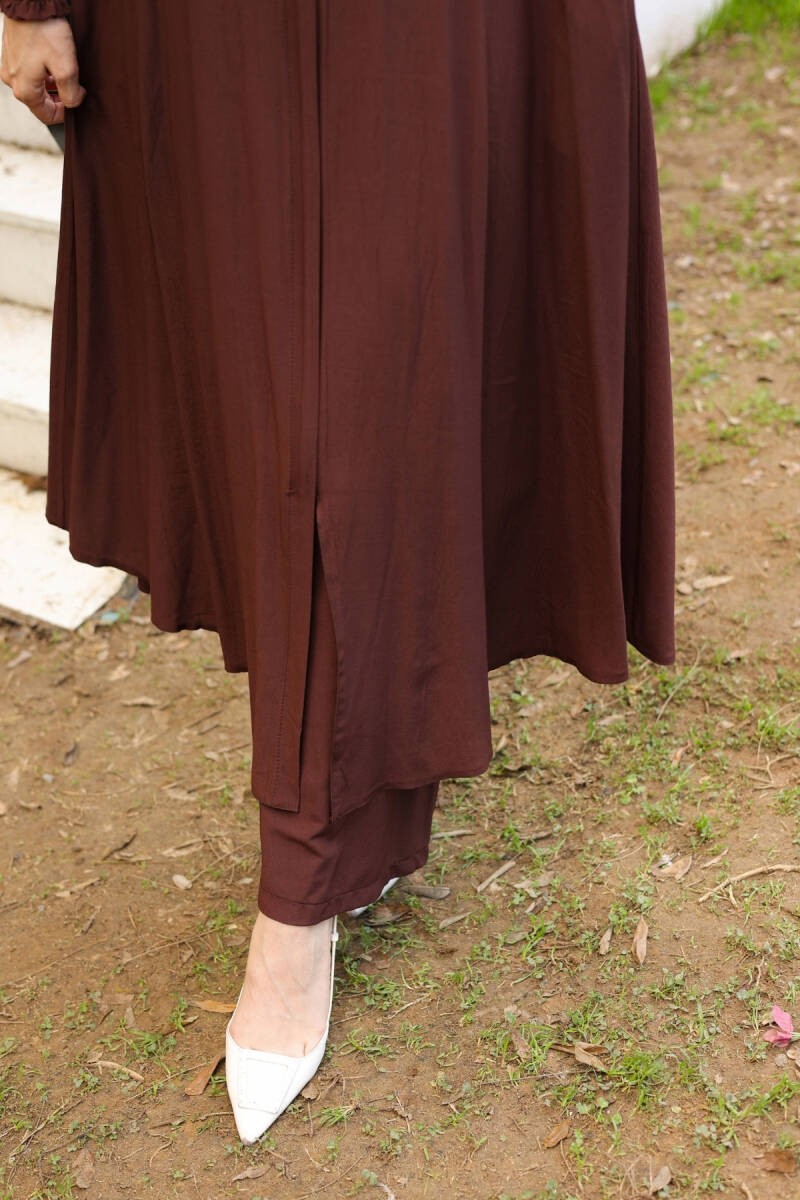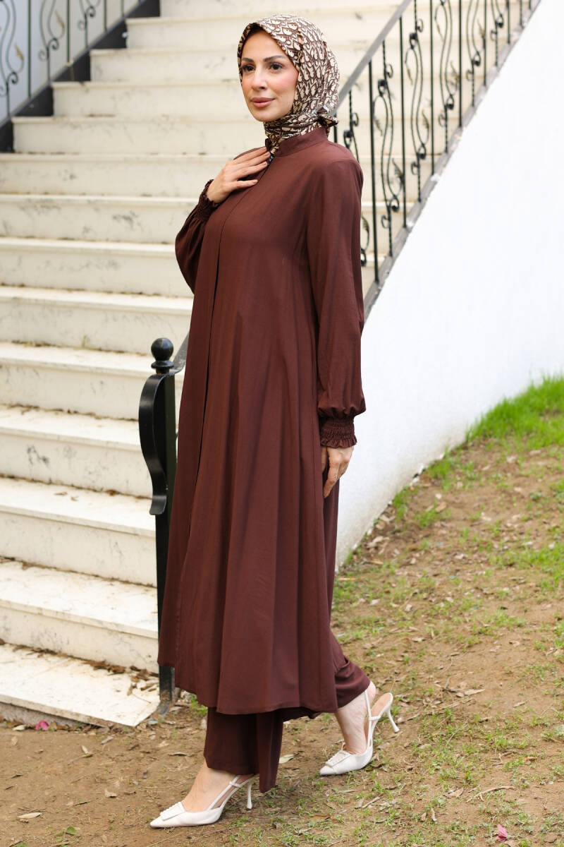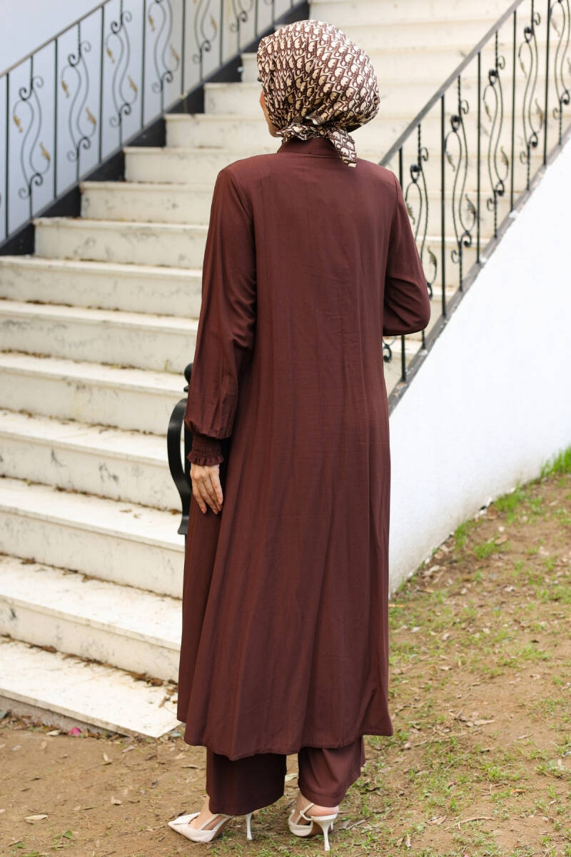 38–48 beden aralığına uygun kesimiyle geniş beden uyumluluğu sağlayan bu takım, hac ve umre ziyaretlerinin yanı sıra günlük ve özel gün kombinlerinde de tercih edilebilir. Sade ve zamansız tasarımı, tesettür giyimde şıklığı ve sadeliği bir arada arayan kadınlar için idealdir.