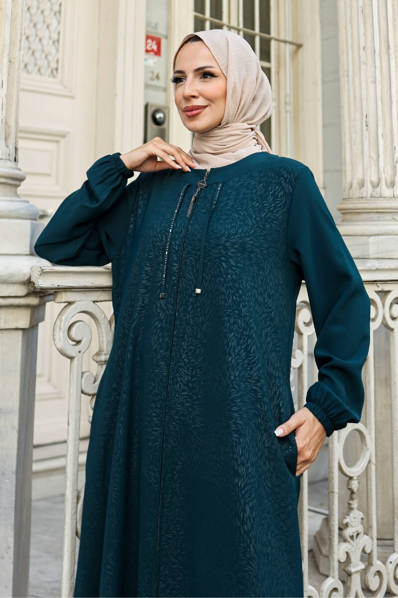 Zarafeti ve rahatlığı bir arada sunan Nisra Ferace, buhara kumaşın dökümlü ve hafif yapısıyla günlük şıklığınızı tamamlıyor. 44-54 beden aralığında sunulan bu özel tasarım, modern kesimi ve göz alıcı detaylarıyla her ortamda fark yaratıyor.