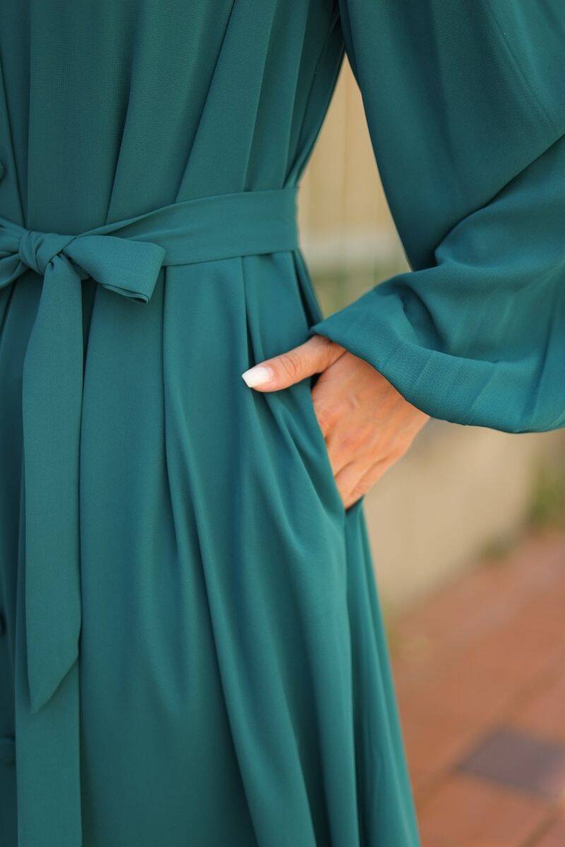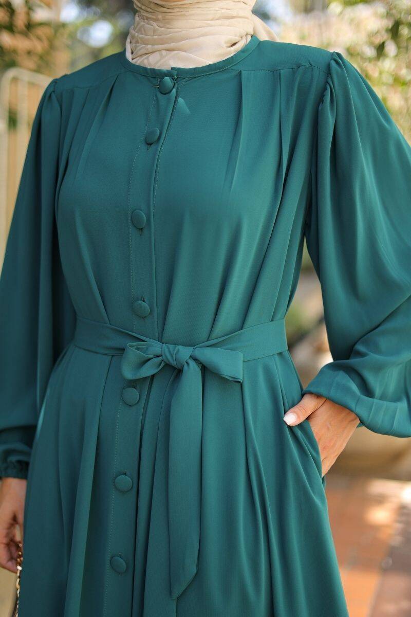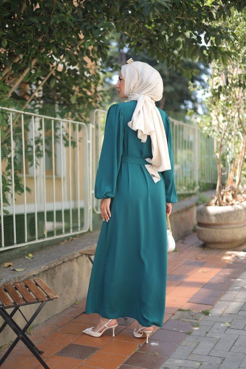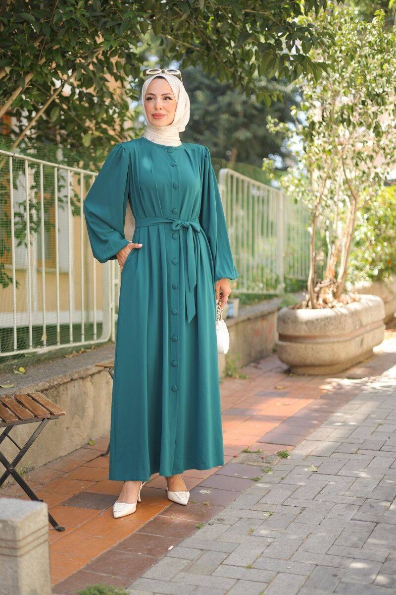 Medine ipeği düğmeli ferace, şık ve zarif bir dış giyim parçasıdır. Medine ipeği, hafif, yumuşak ve parlak bir dokuya sahip olup, genellikle yaz aylarında tercih edilir. Düğmeli tasarımı, feracenin pratikliğini artırırken, aynı zamanda şıklığını da ön plana çıkarır.