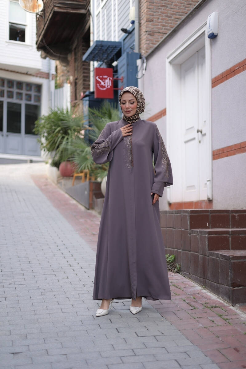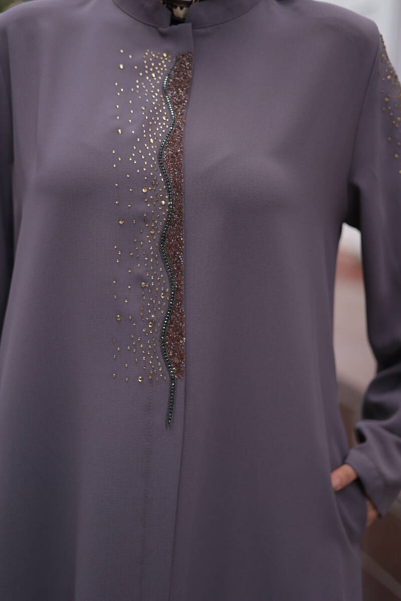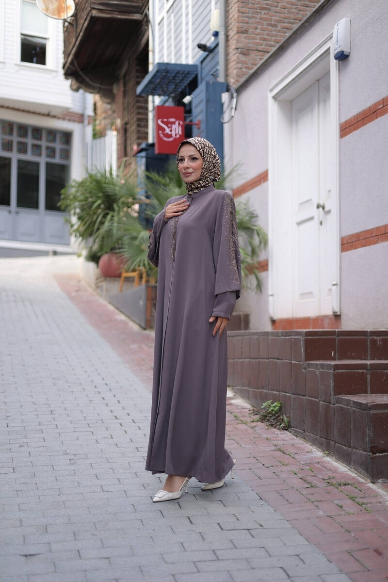 Kol ve ön kısmındaki taş işlemeler, modele ışıltılı bir dokunuş kazandırırken, sade kesimiyle her ortamda zarif bir duruş sergiler. Günlük kullanımdan özel davetlere kadar her anınıza uyum sağlayan bu ferace, rahat kesimiyle özgür hareket imkânı sunar.
