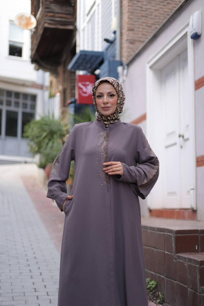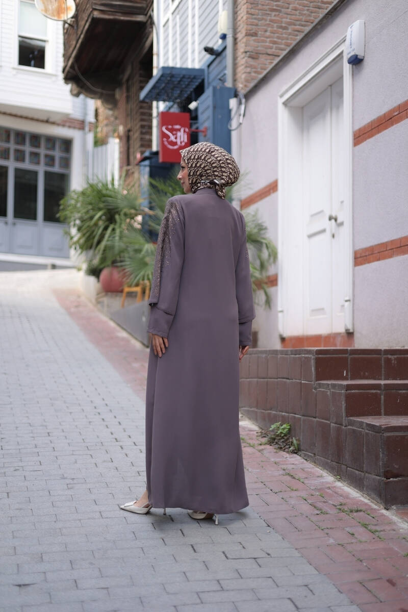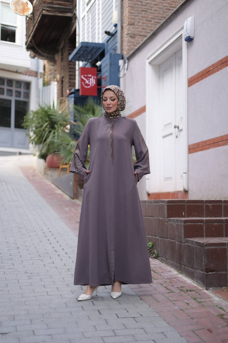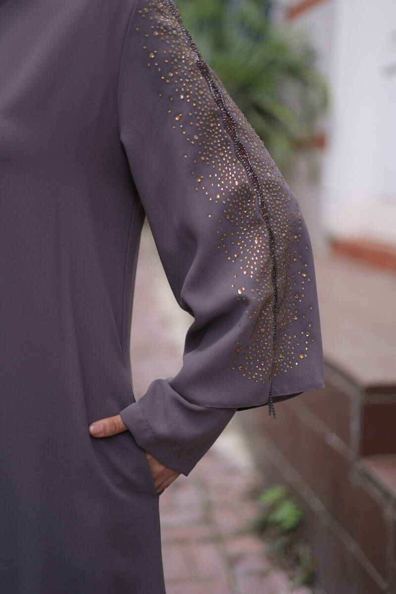 Kol ve ön kısmındaki taş işlemeler, modele ışıltılı bir dokunuş kazandırırken, sade kesimiyle her ortamda zarif bir duruş sergiler. Günlük kullanımdan özel davetlere kadar her anınıza uyum sağlayan bu ferace, rahat kesimiyle özgür hareket imkânı sunar.