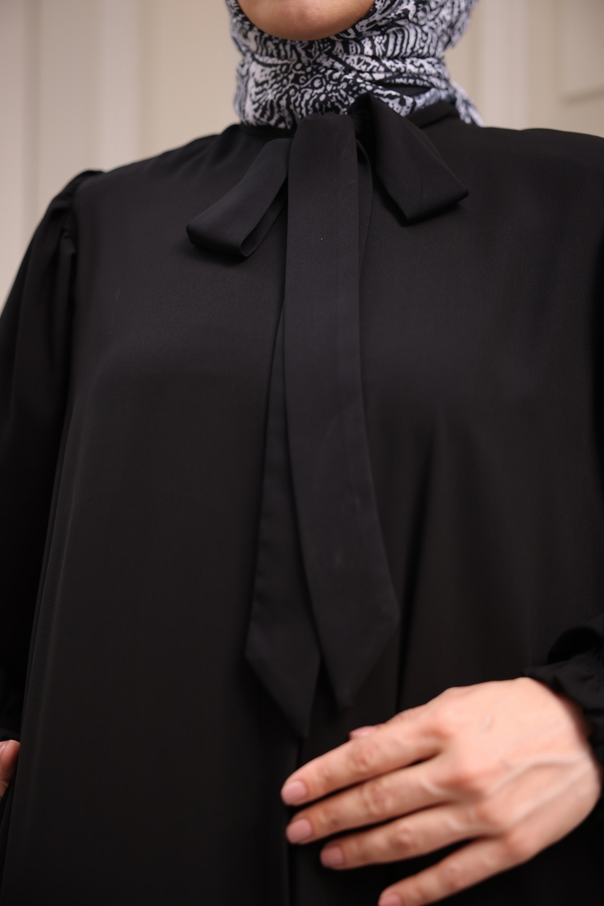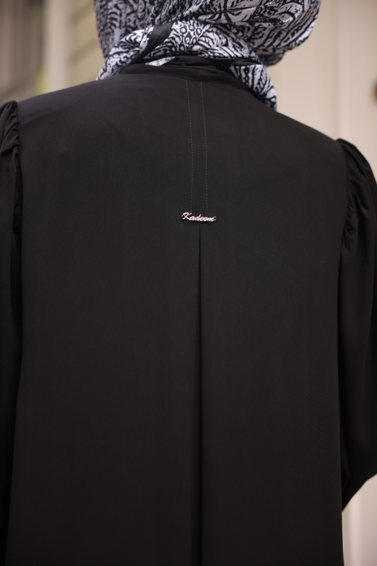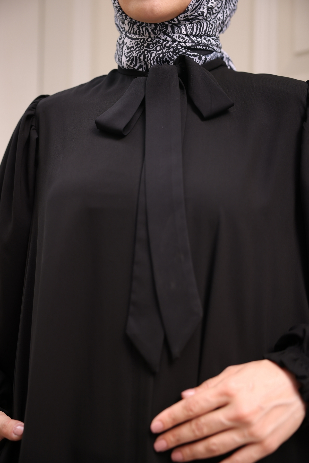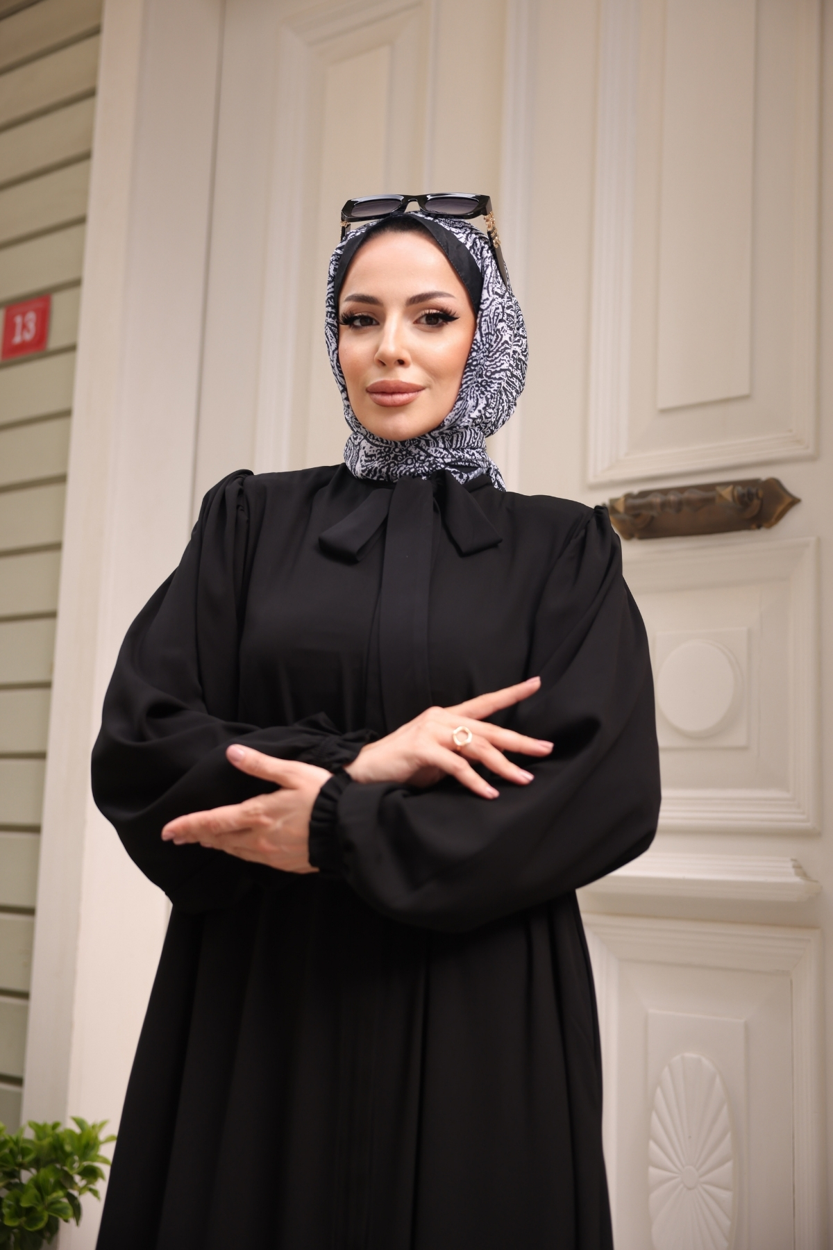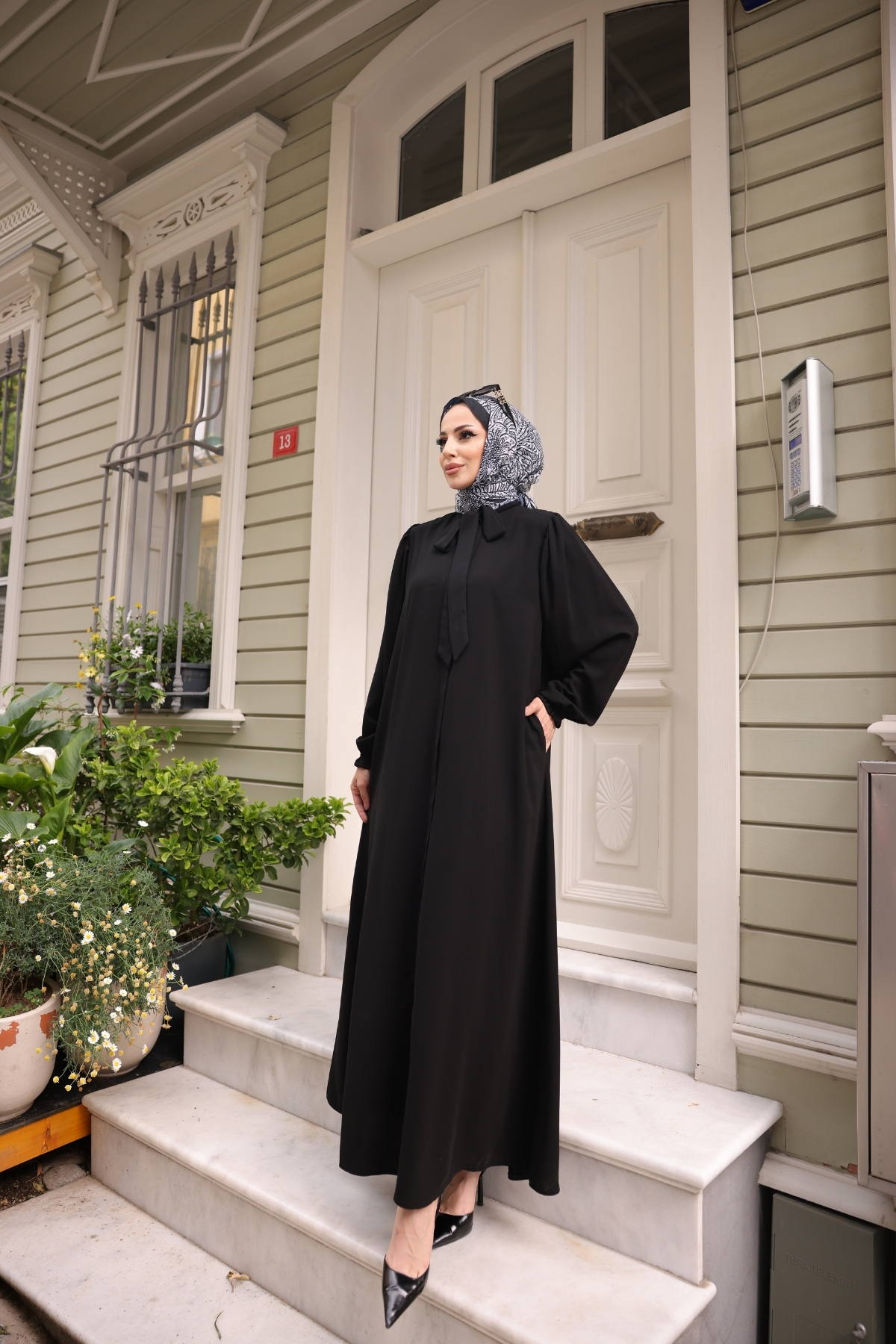 Medine ipeği kumaşın dökümlü ve zarif yapısıyla tasarlanan bu özel ferace, kravat yaka detayı ile modern bir görünüm sunarken, arka kısmındaki A pile detayı ile hareket özgürlüğü sağlar. Hem günlük kullanıma hem de özel günlere uygun bu model, şıklığı ve rahatlığı bir arada arayanlar için ideal.