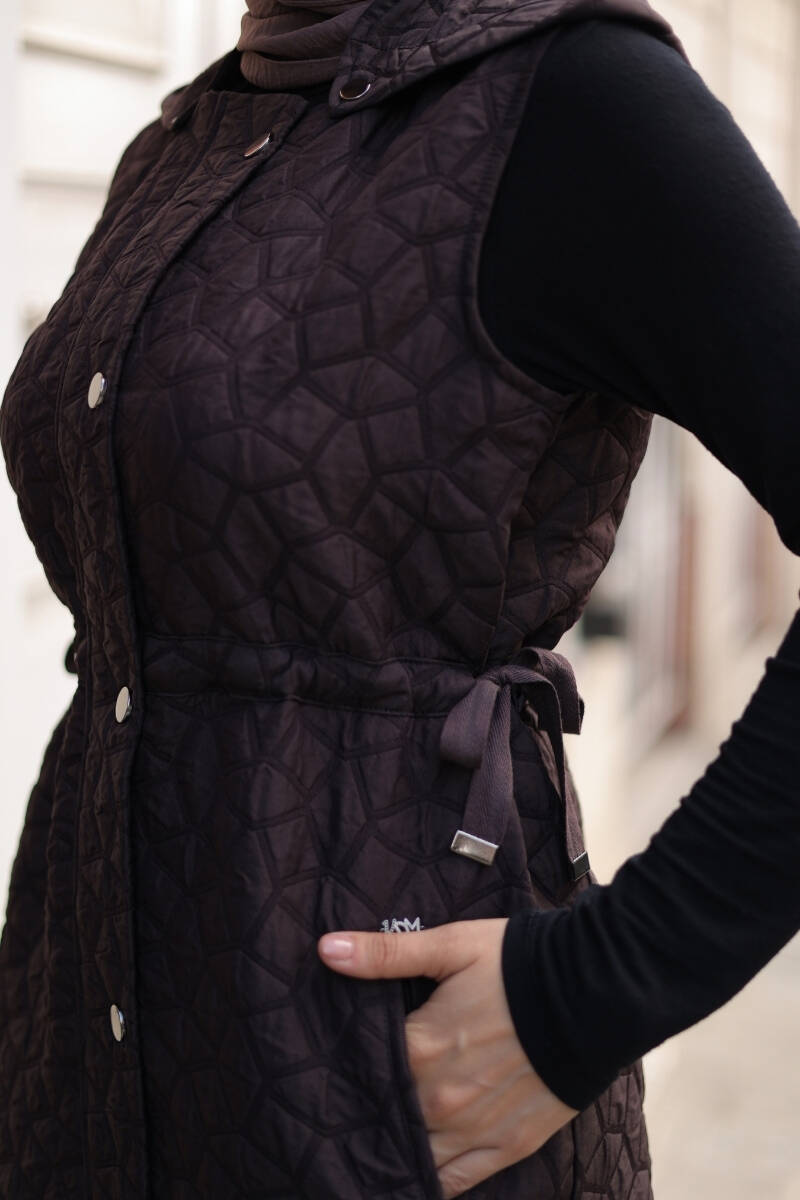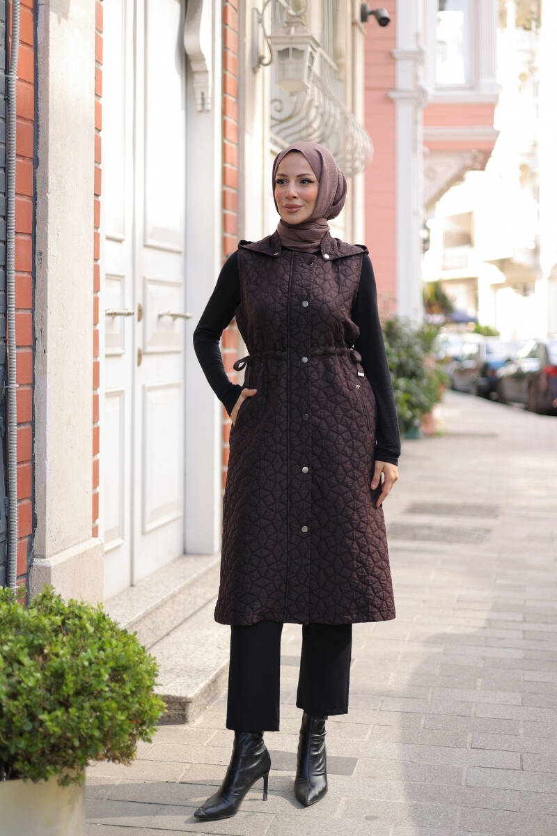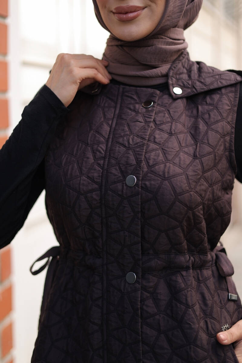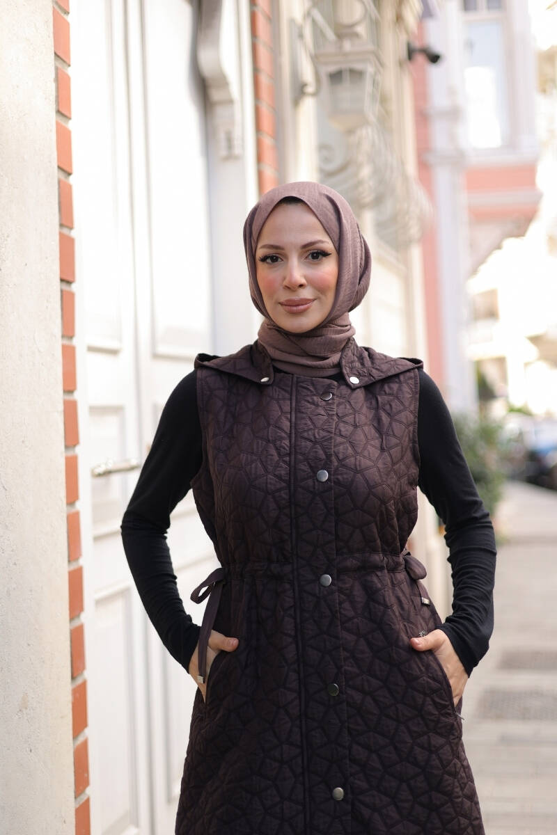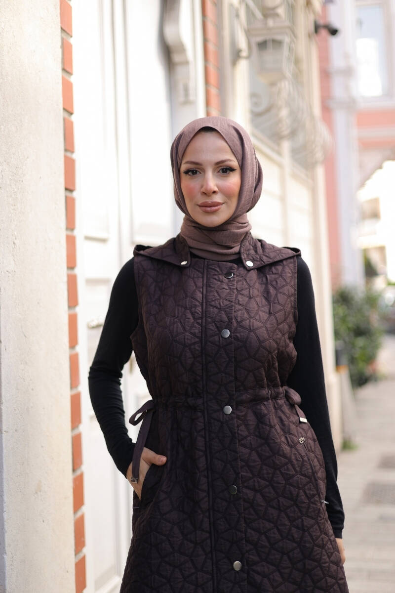 Şirin Kapüşonlu Kapitone Yelek Kahverengi - 7005