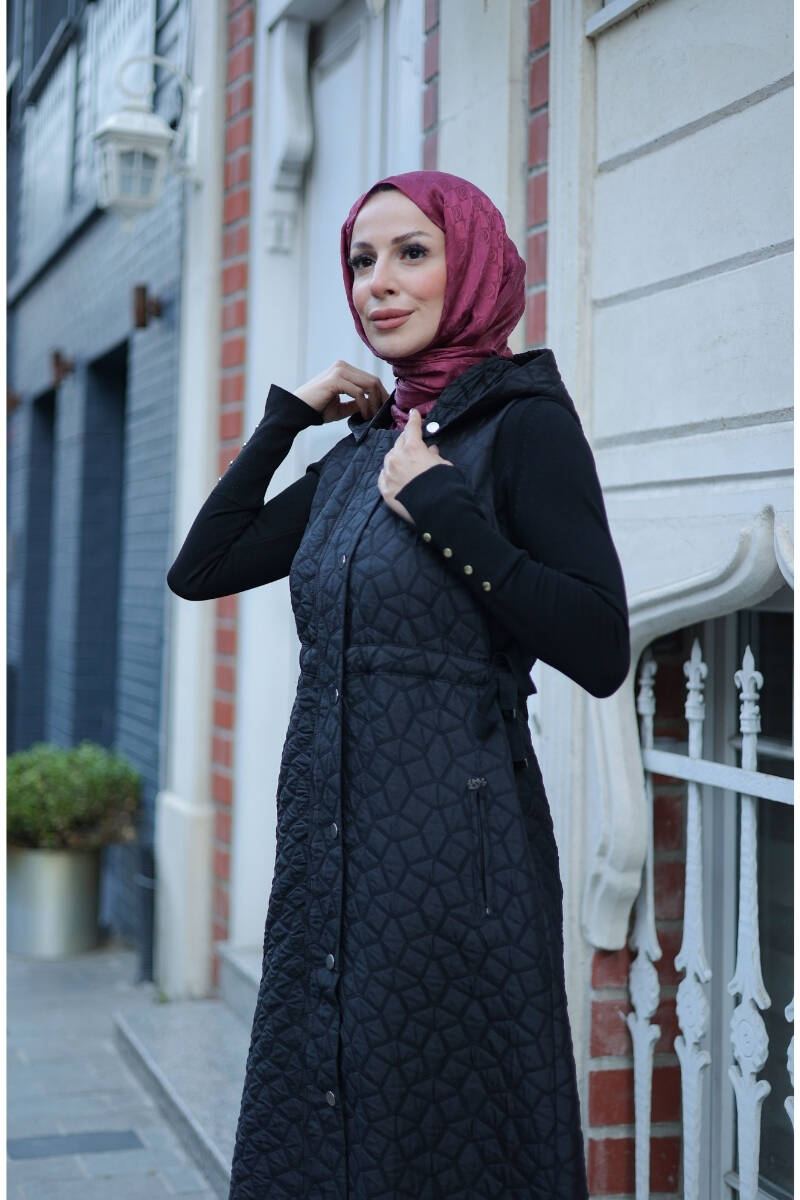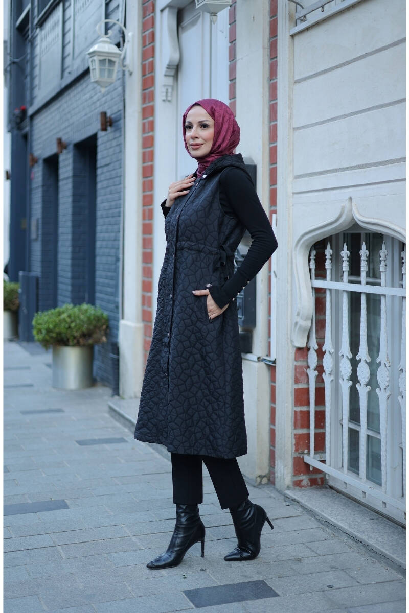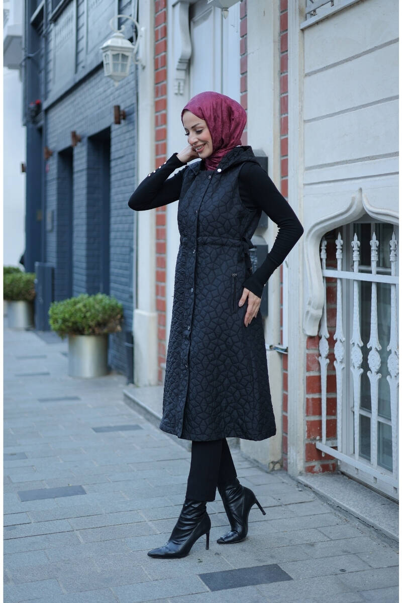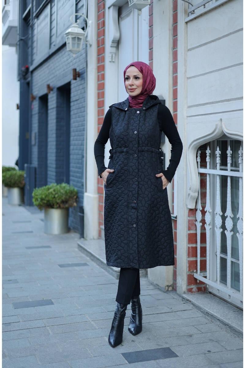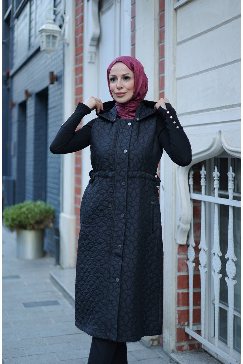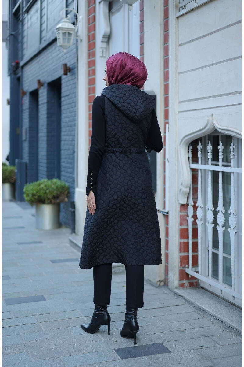 Şirin Kapüşonlu Kapitone Yelek Siyah - 7005